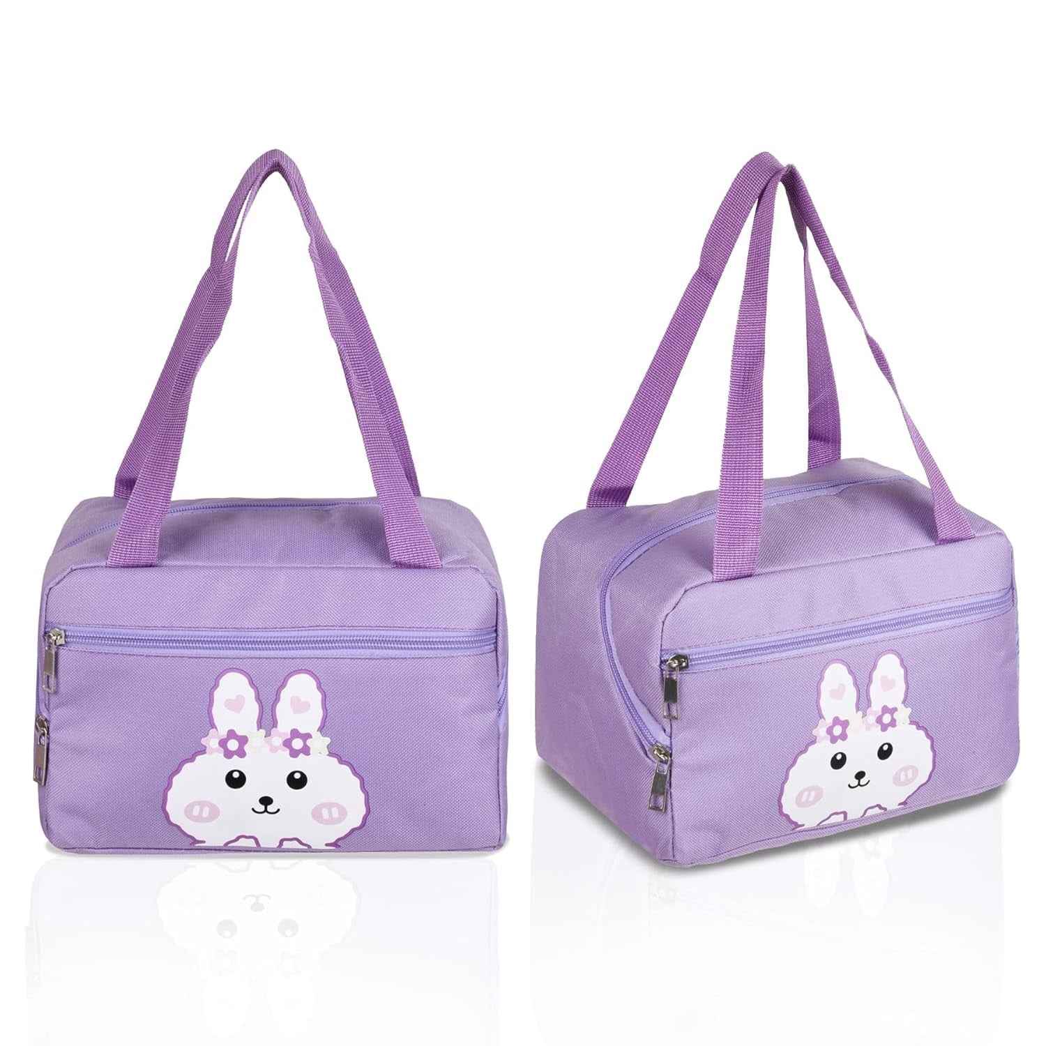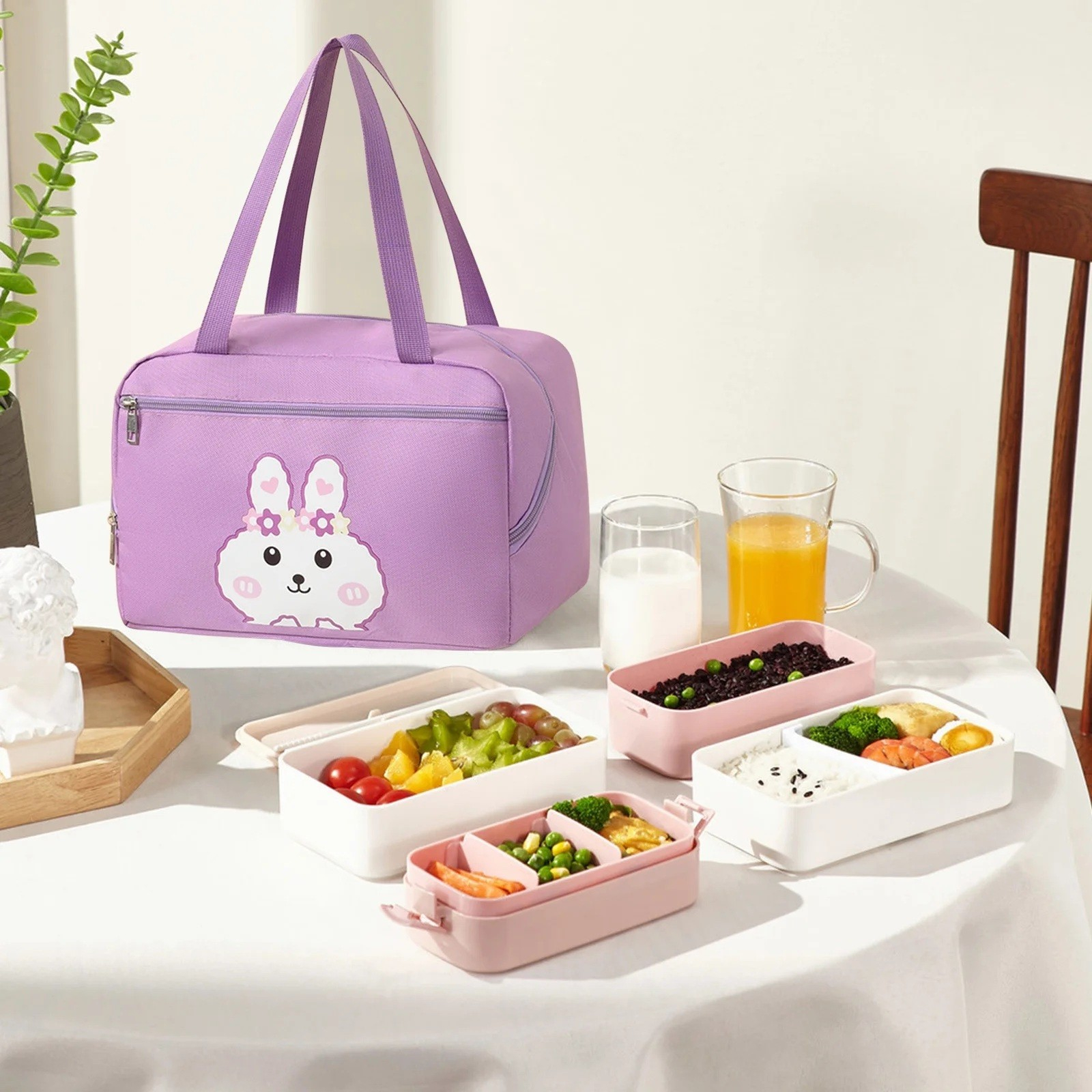 Geantă Termo-Izolantă , cu Compartimente pentru Telefon și Tacâmuri, 30 x 21 x 20 cm, Design Iepuraș, Mov