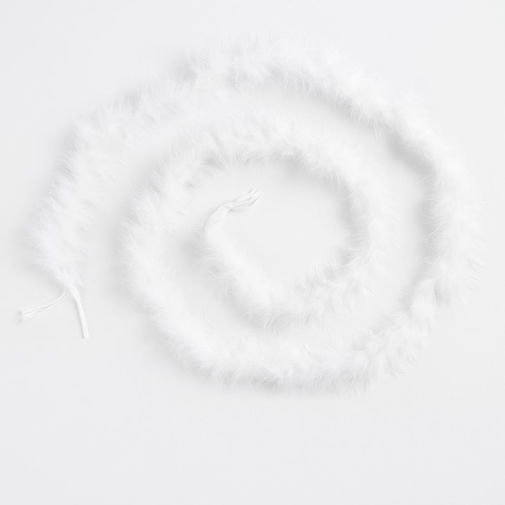 Ghirlanda pentru decor sau bradul de Craciun, model pene si bumbac, 200cm, alb
