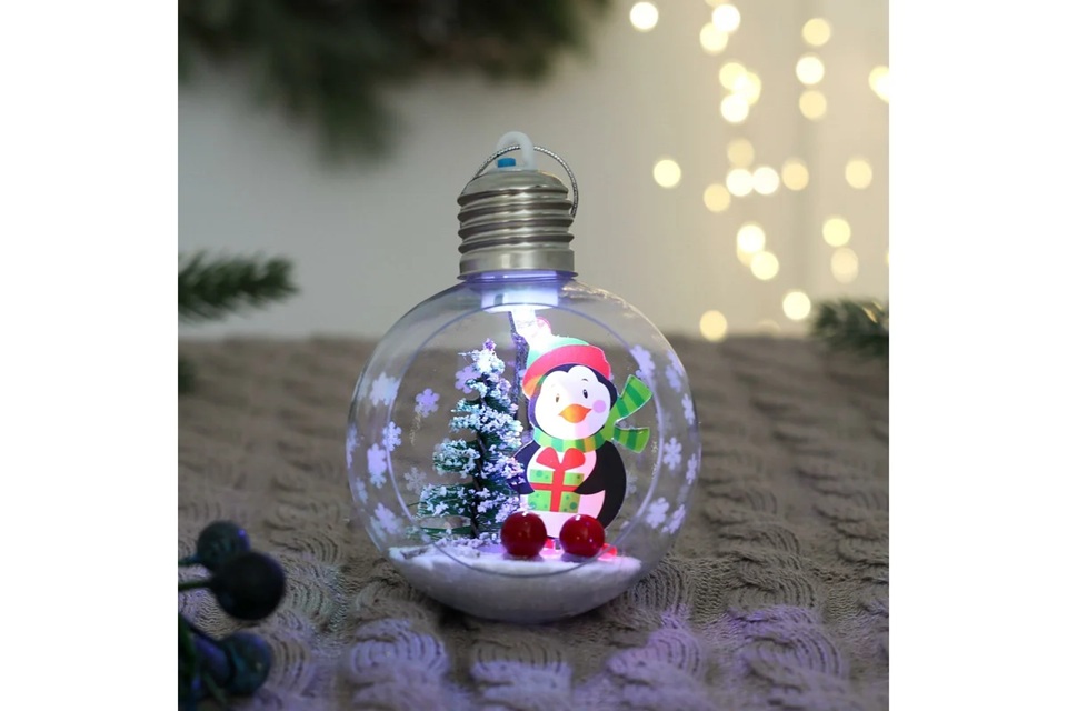 Adaugă magie bradului de Crăciun cu acest glob decorativ , prevăzut cu LED luminos și un adorabil model Pinguin. Globul este realizat din plastic transparent, are design deschis pe lateral și creează un efect spectaculos atunci când LED-ul este aprins.