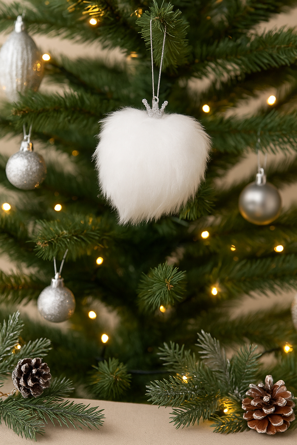 Glob decorativ Atmosphera cu finisaj pufos, diametru 8 cm, alb