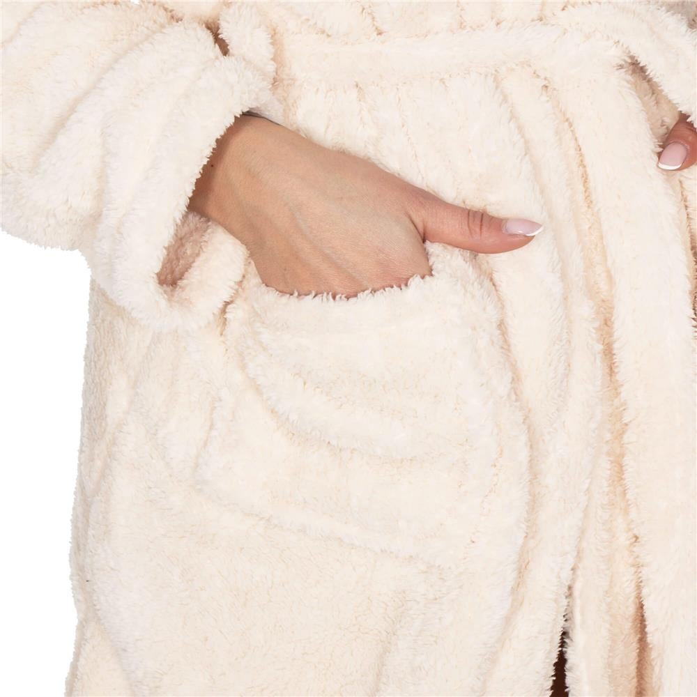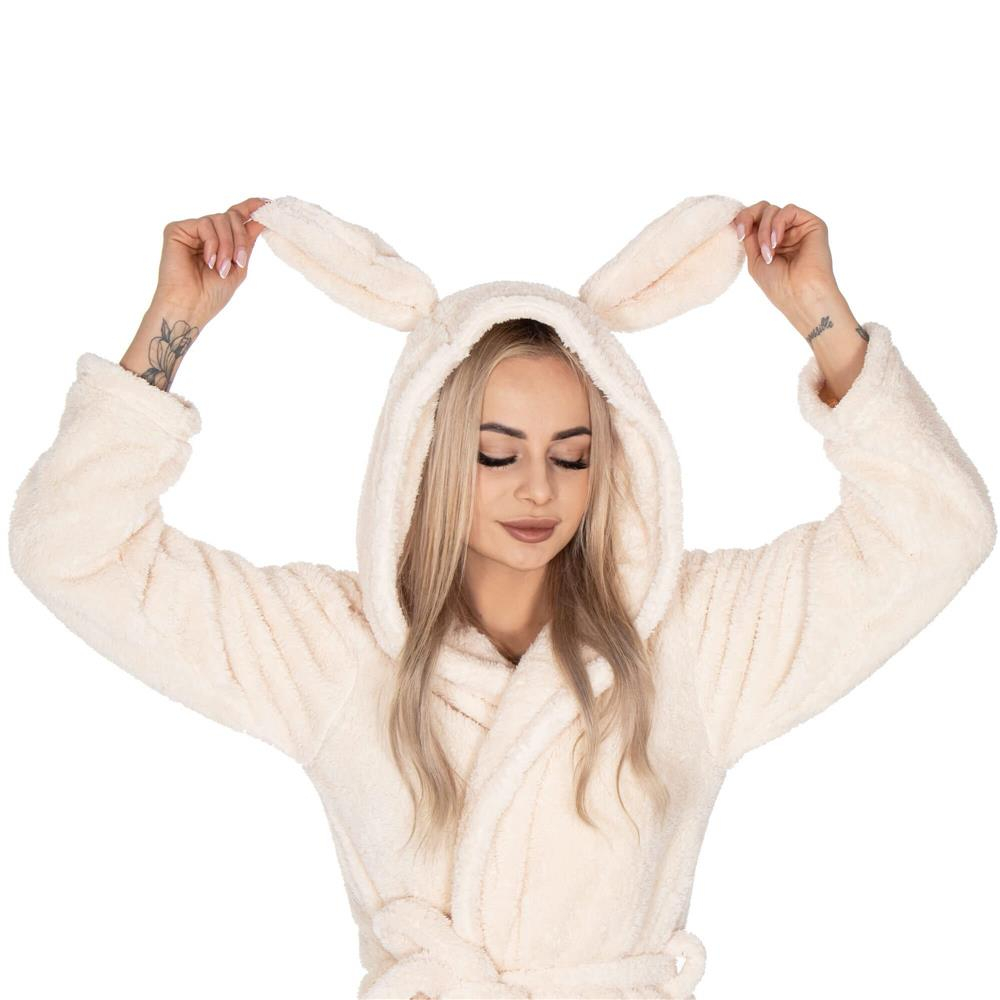 Halat de baie pentru femei pana la genunchi, gluga cu urechi , marimea S/M, bej