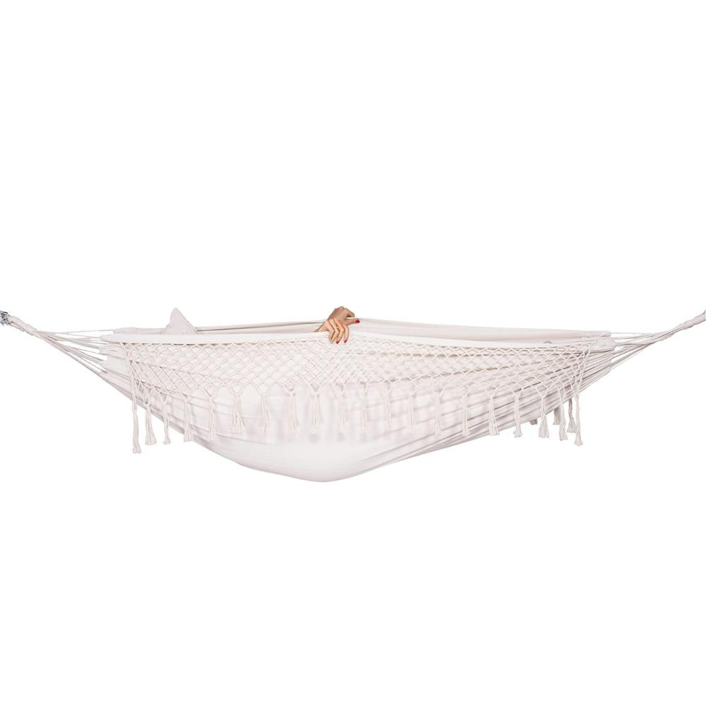 Hamac doua persoane cu franjuri si 2 perne, 200kg, 200×150 cm, bej