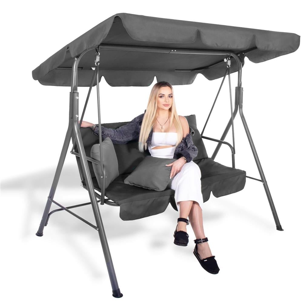 Husa din panza pentru leagan de gradina mare, viziera acoperis, 220x115 cm, gri