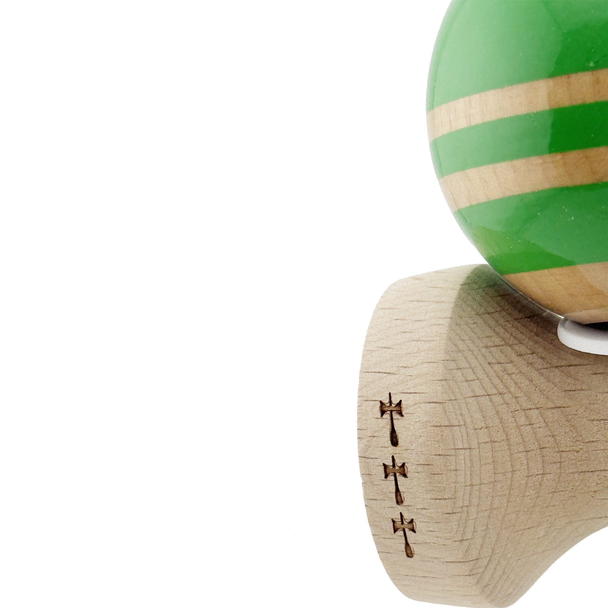 Kendama X Originala RAINBOW, Profesionala, , Cupe Mari KING SIZE V3, Super Sticky, Gaura in Baza, Rulment Metalic, din lemn 18 cm, Ata 55 cm, Verde/Maro
