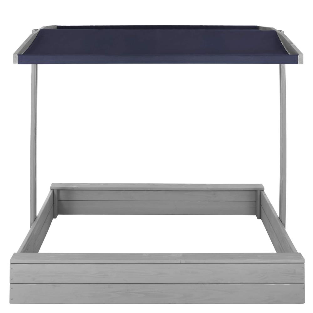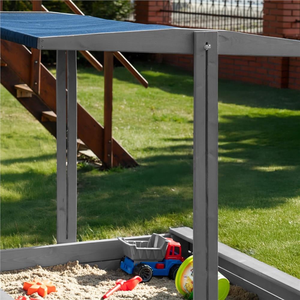 Specificatii tehnice: Tip produs: Lada de nisip cu baldachin si capac Material: Lemn de conifere tratat ecologic Culoare lemn: Gri Culoare acoperis: Albastru inchis Certificare:...