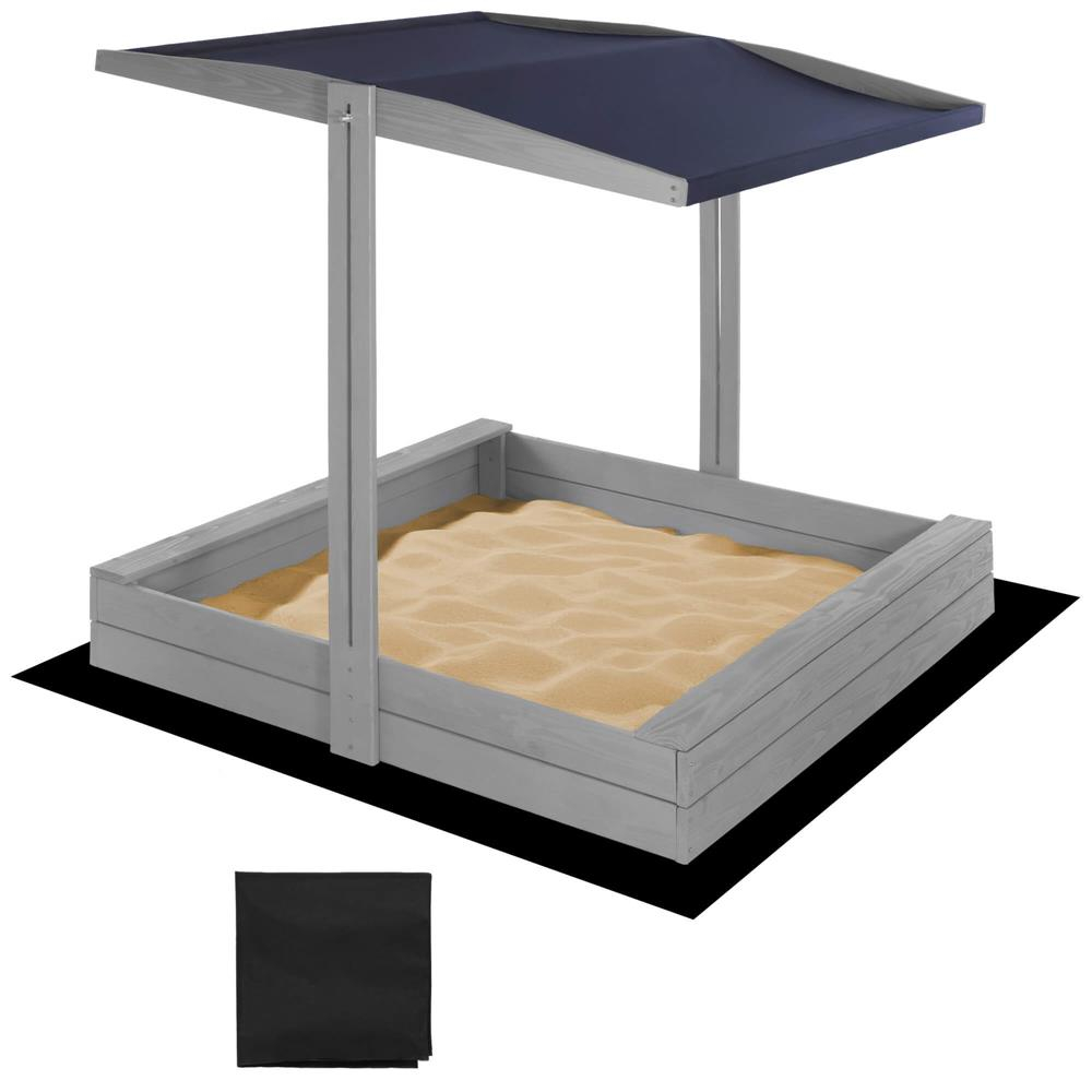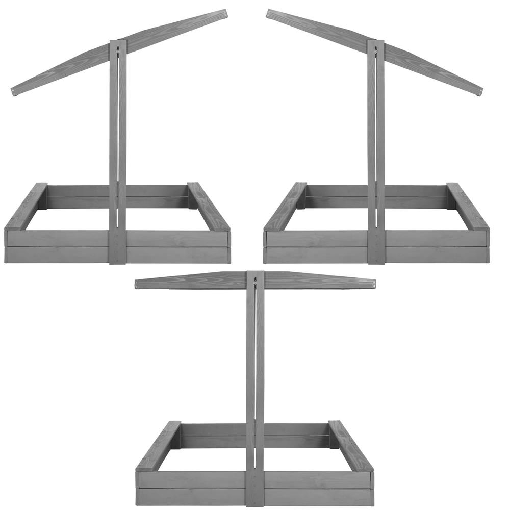 Lada nisip din lemn cu acoperis reglabil si capac, pliabila, 120x120x120 cm, gri