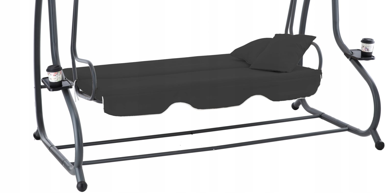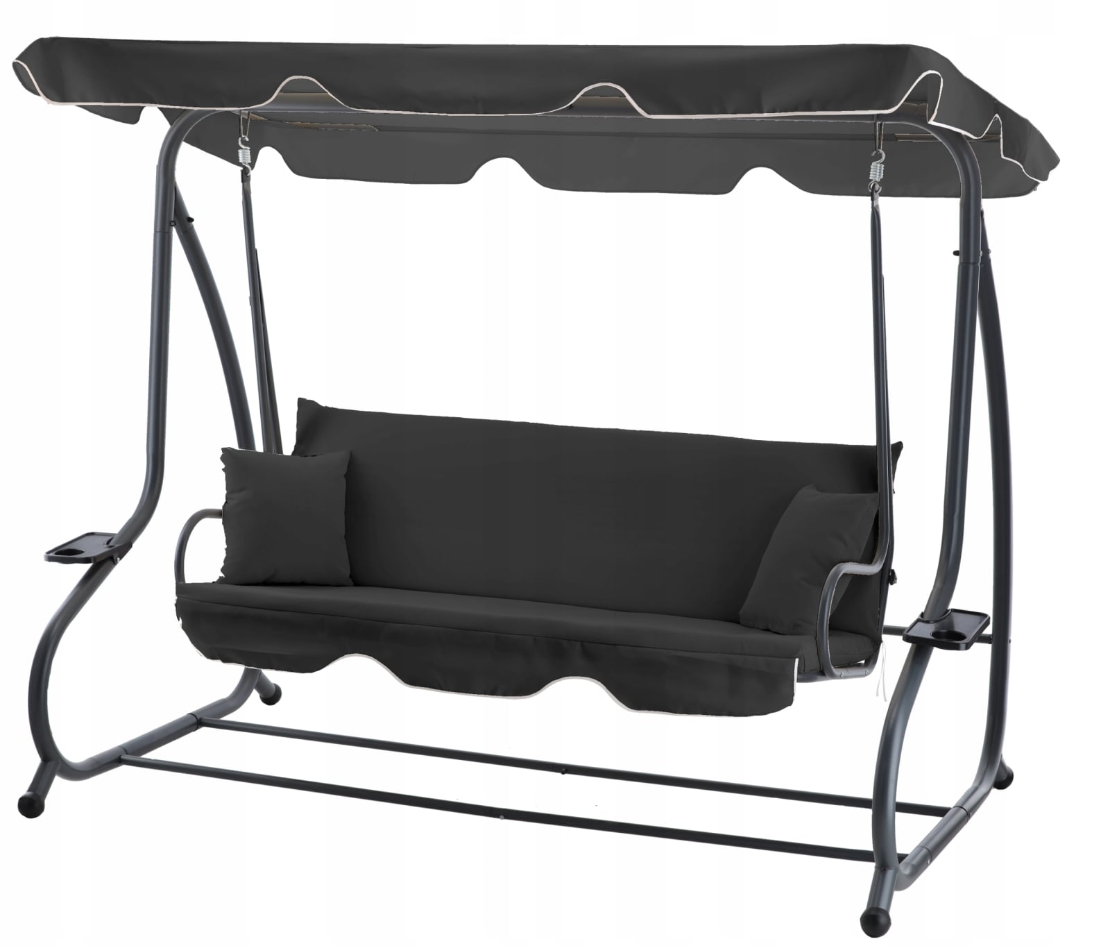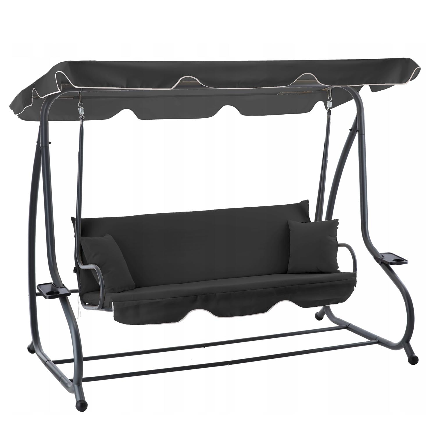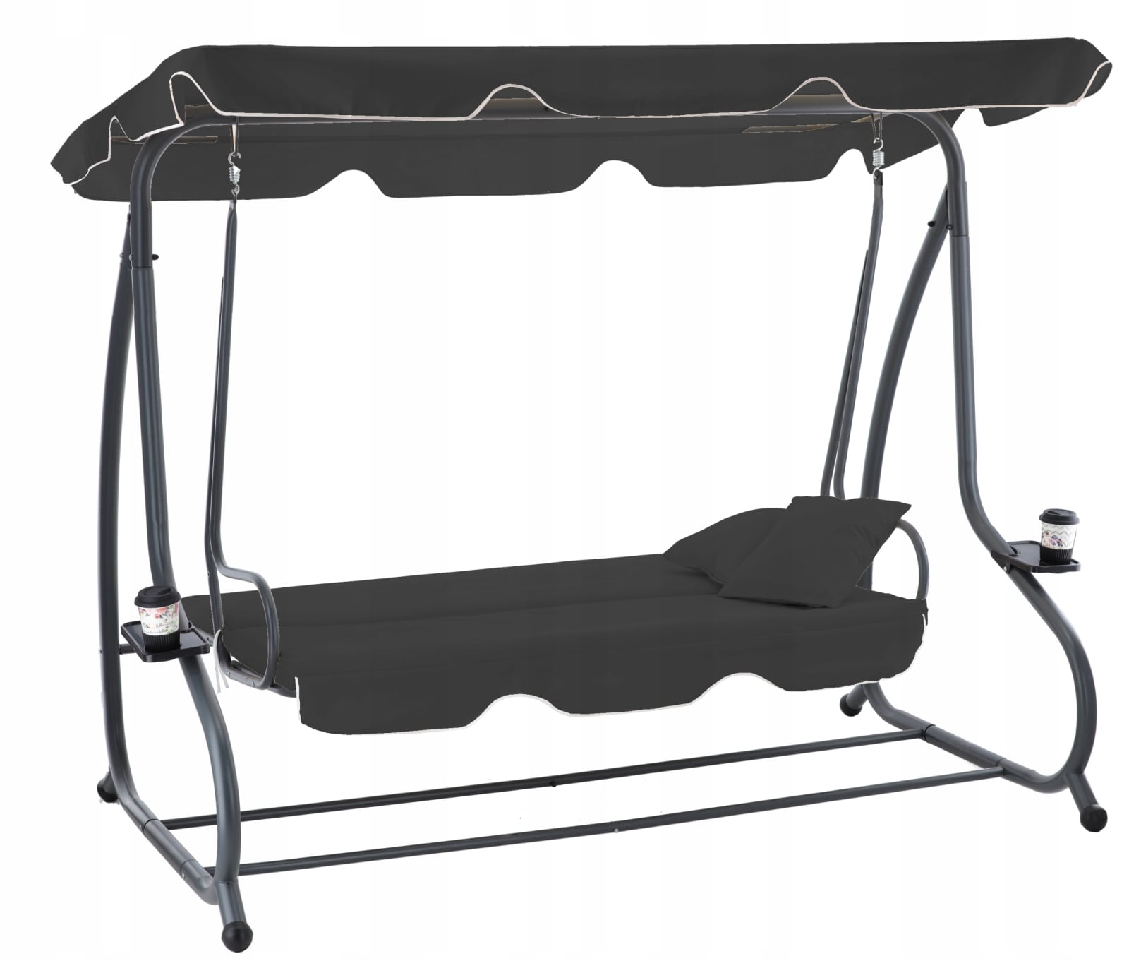 Leagan gradina 3 locuri cu baldachin reglabil, perne si suport pahare, 210x120x170 cm, gri inchis