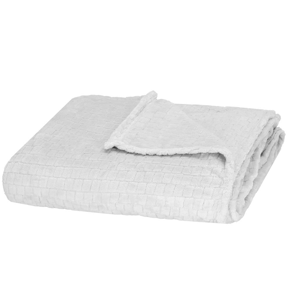 Material: poliester Culoare: nuanta de gri deschis Dimensiuni: 170x210 cm Model: in relief, cu doua fete Patura moale si placuta este solutia ideala pentru serile...