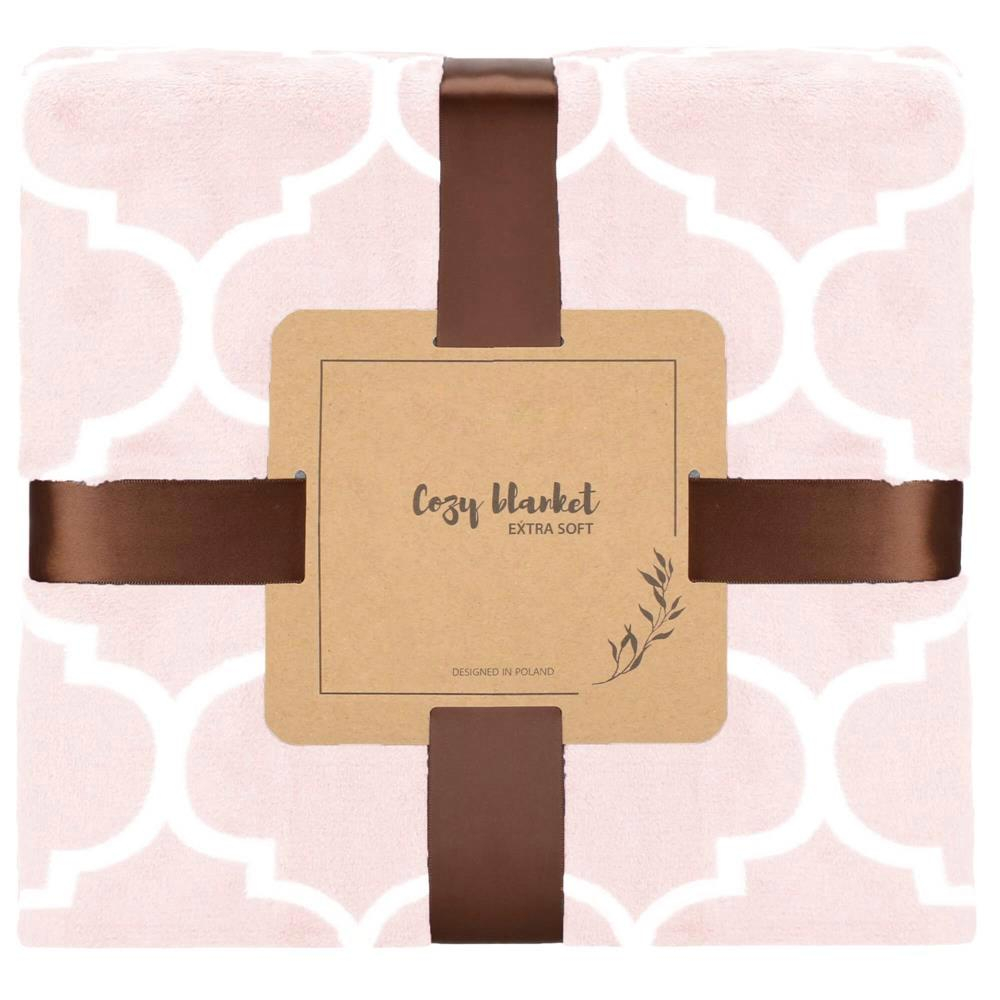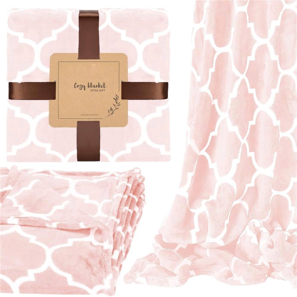 PATURA PUFOASA Material: poliester Culoare: nuante de roz deschis, alb Dimensiuni: 200x220 cm Model: trifoi marocan Patura moale si placuta este solutia perfecta pentru serile...