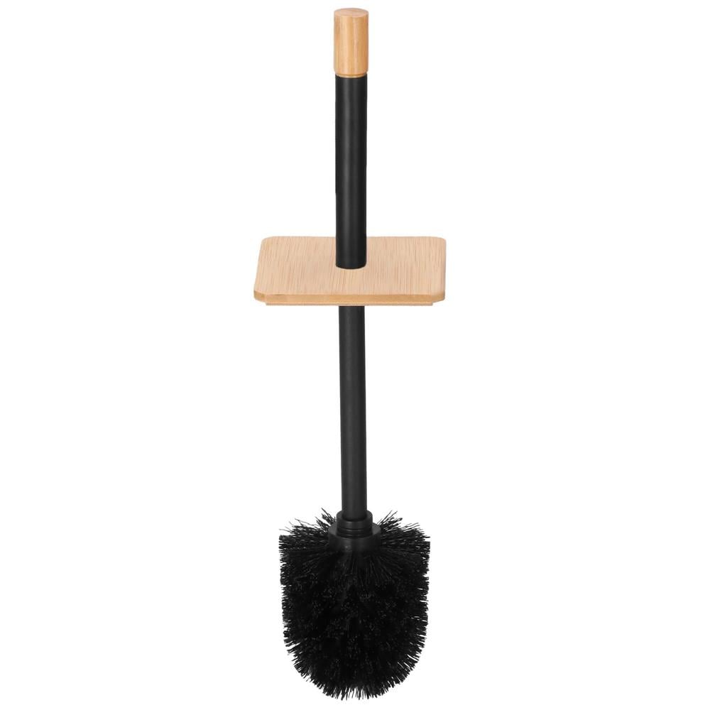 Perie WC cu rezervor detasabil si capac, din metal si bambus, 40 cm, negru