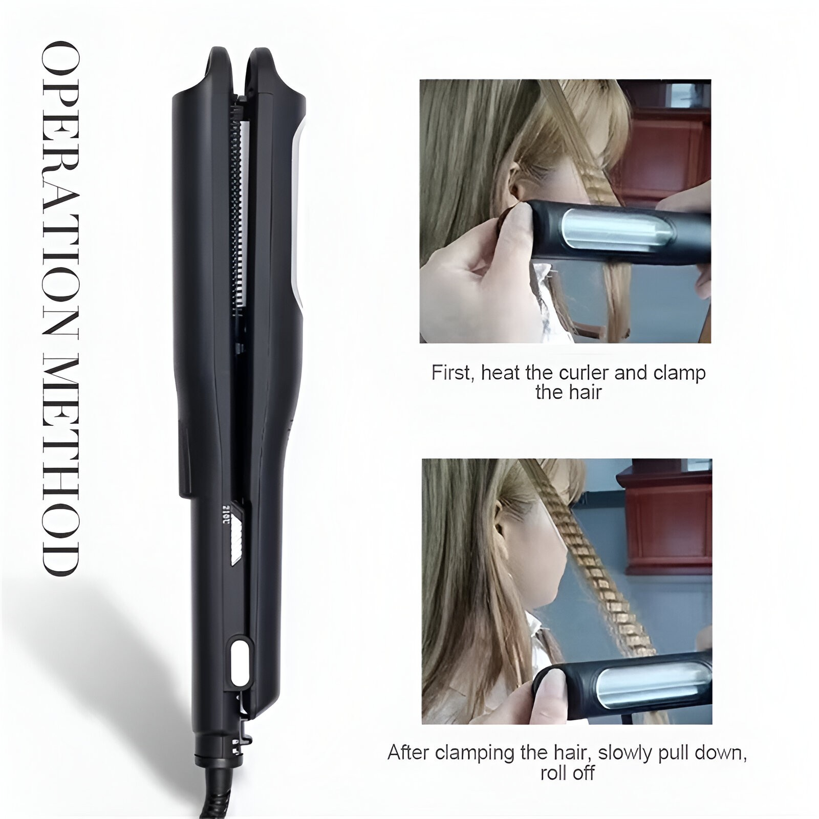 Plăcile vă permit să experimentați cu diferite stiluri – păr ondulat sau o combinație de păr drept și ondulat, ca la un salon de coafură. Introduceți o șuviță de păr între plăcile încălzite, pe care le strângeți împreună și le glisați ușor cu fierul de ondulat spre vârfurile părului. Niciodată atât de rapid pentru o coafură perfectă!