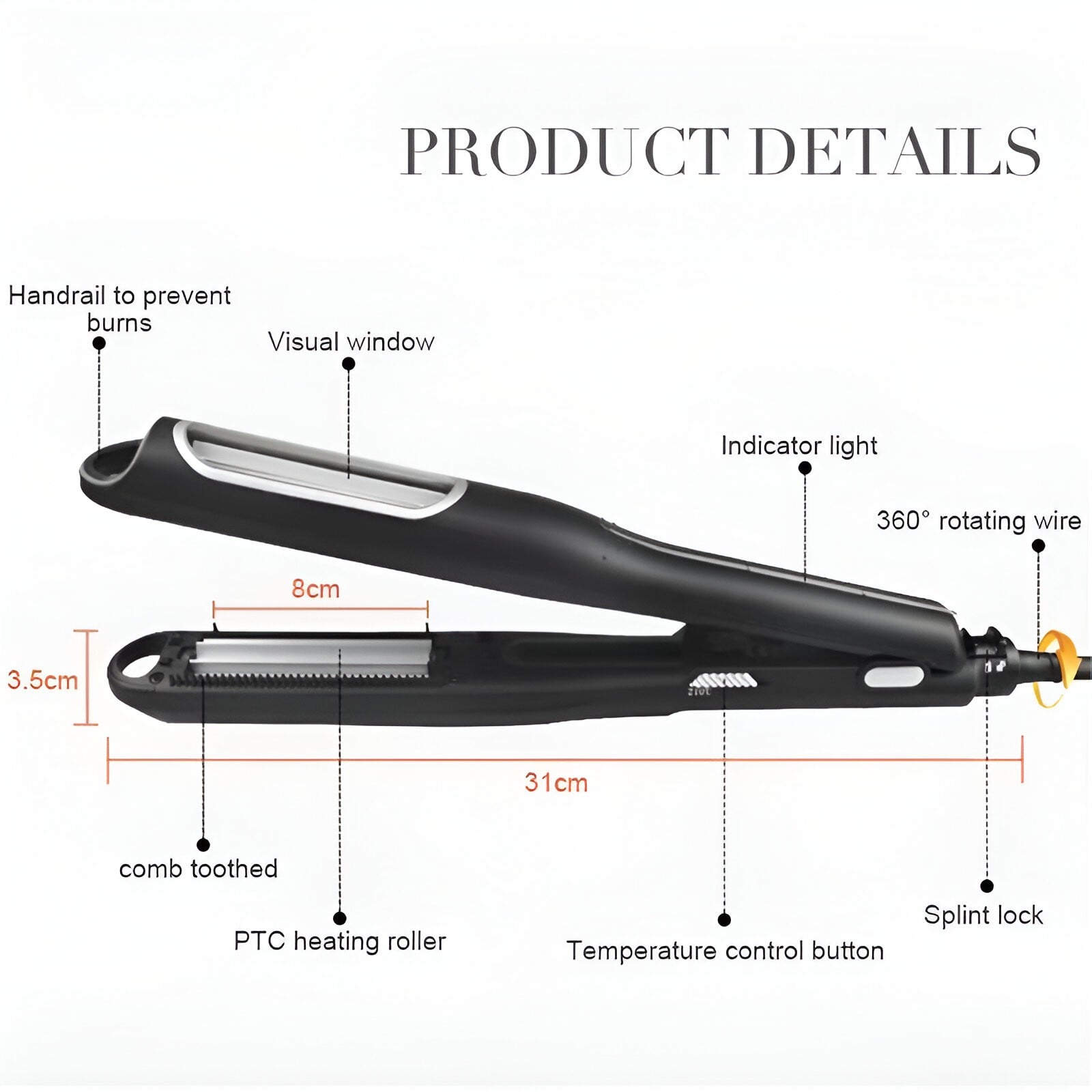 Clip de păr cu rotație de 360 de grade, echipat cu un senzor sensibil încorporat pentru a preveni blocarea părului, fără a afecta părul.
