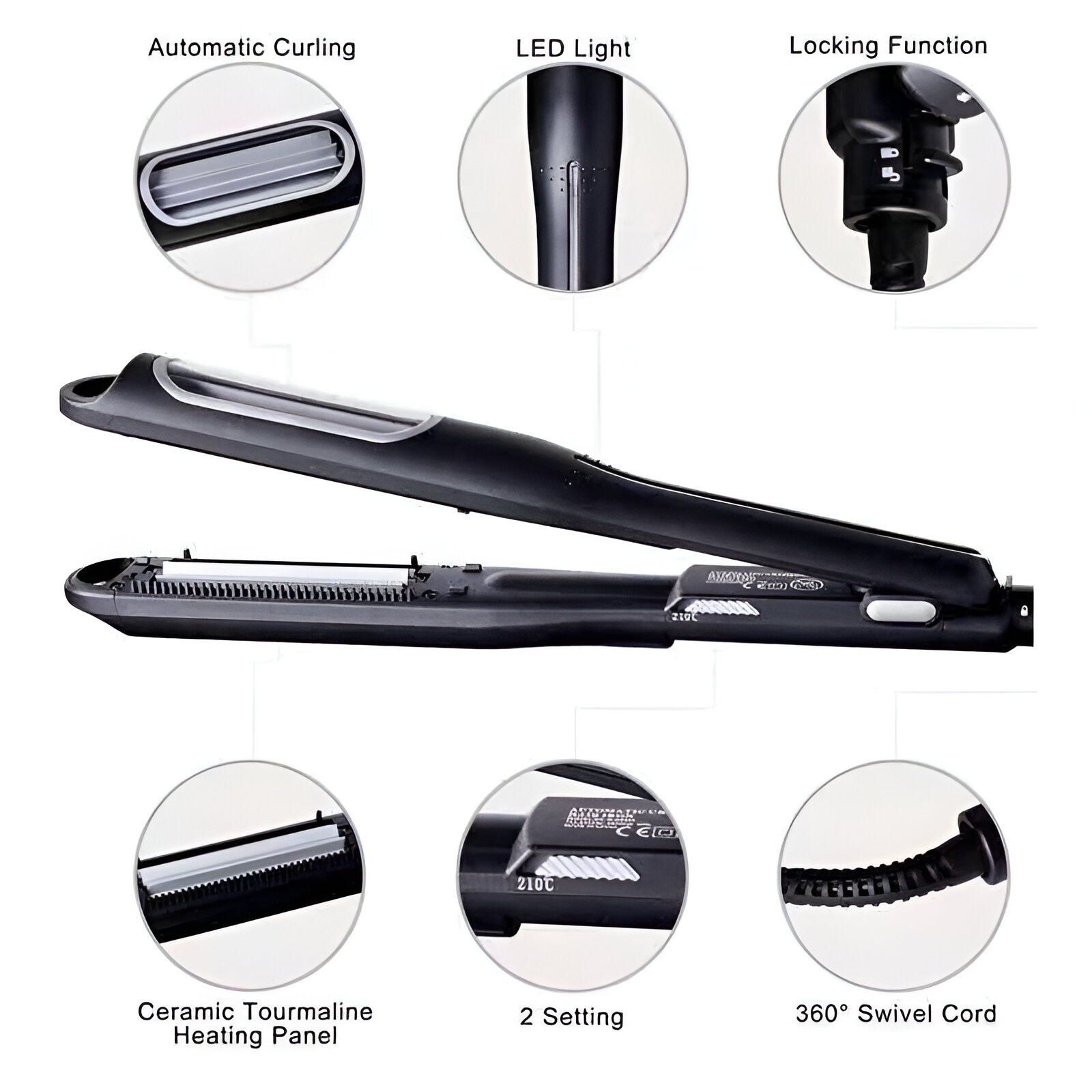 Tehnologia Tourmaline protejează părul cu o distribuție uniformă a căldurii care pătrunde rapid în păr, coafând părul din interior spre exterior și ajutând la sigilarea cuticulei părului pentru a spori strălucirea.