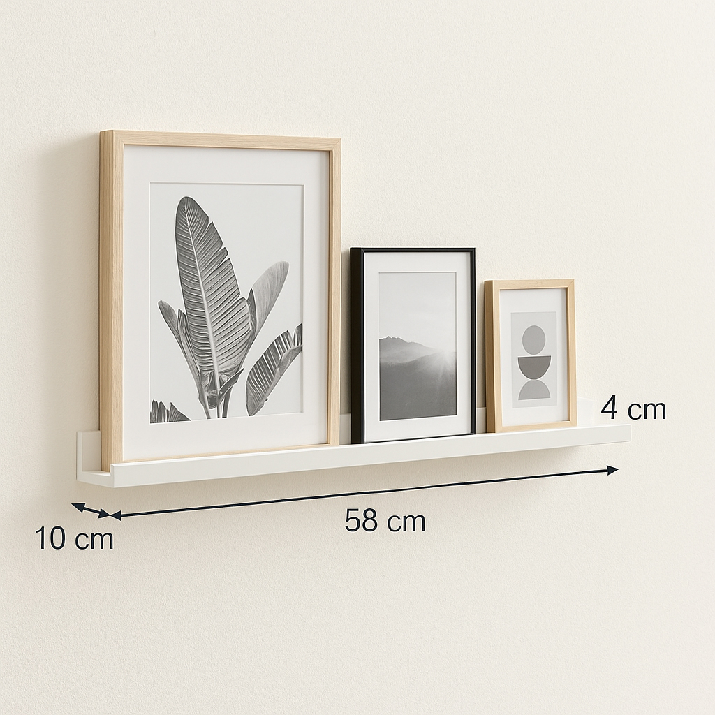 Raft perete 5Five Fixy pentru rame foto, MDF, 58x10x4 cm, alb