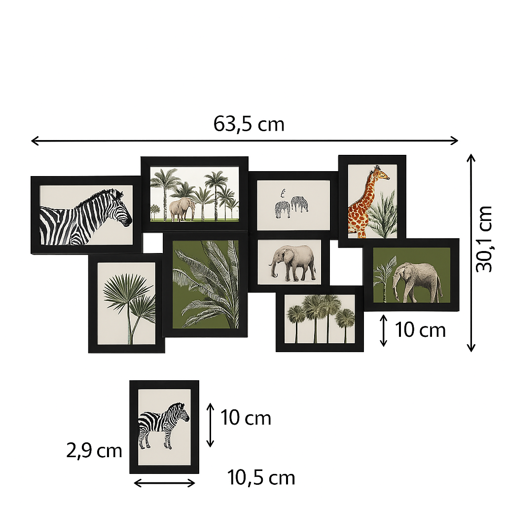 Rama foto colaj Atmosphera Cali pentru 8 poze, format orizontal, negru, 63x30 cm