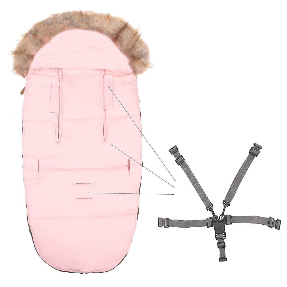Sac iarna de bebelusi pentru carucior, marime universala, cu gluga, 90x45cm, roz