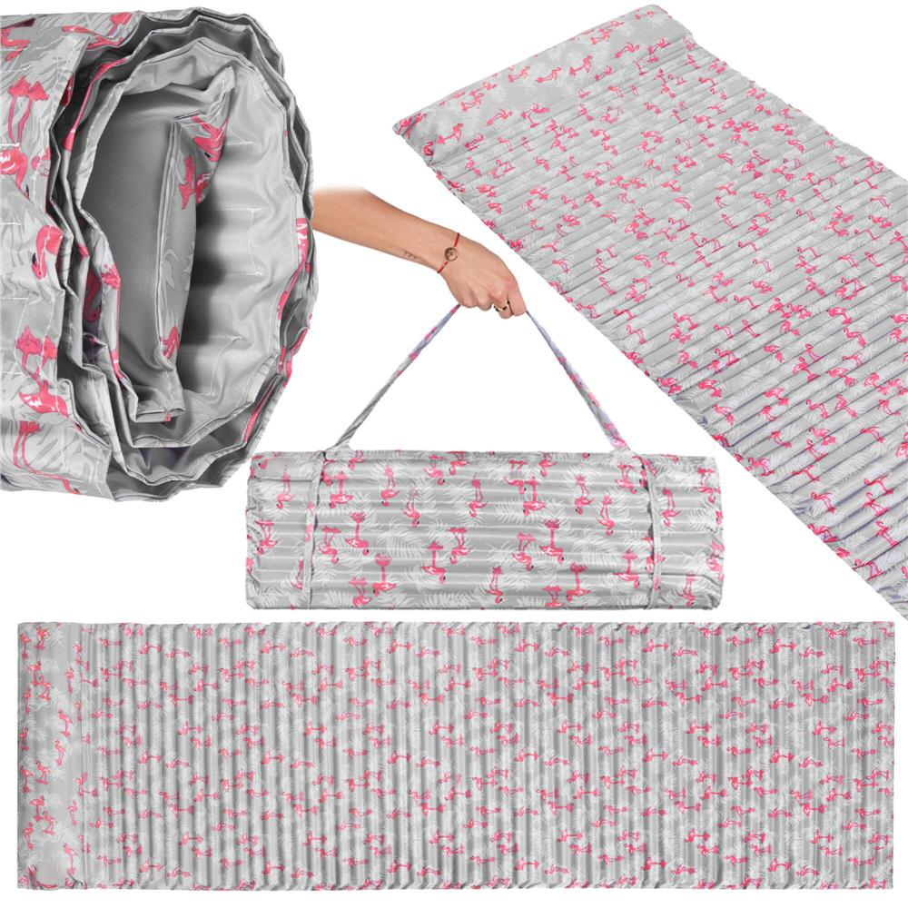 Saltea pentru plaja pliabila, din spuma, ultra-usoara, cu perna si maner de transport, 60x180cm, gri flamingo roz