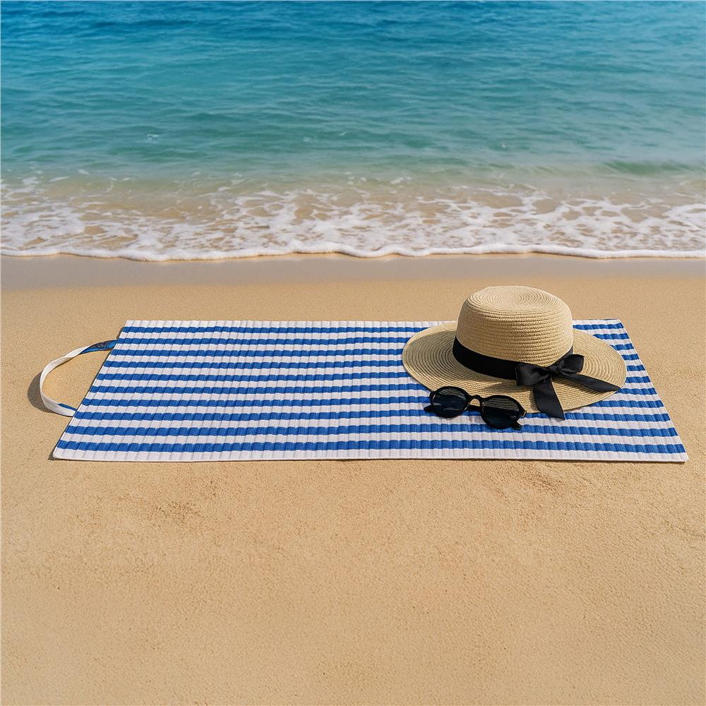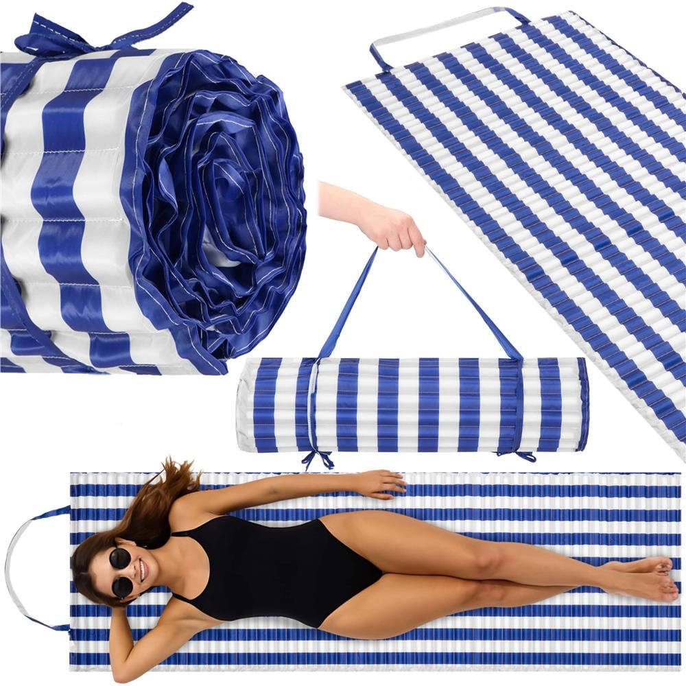 Saltea plaja pliabila din spuma EPE, cu maner si prindere, 180x60x1 cm, albastru cu dungi