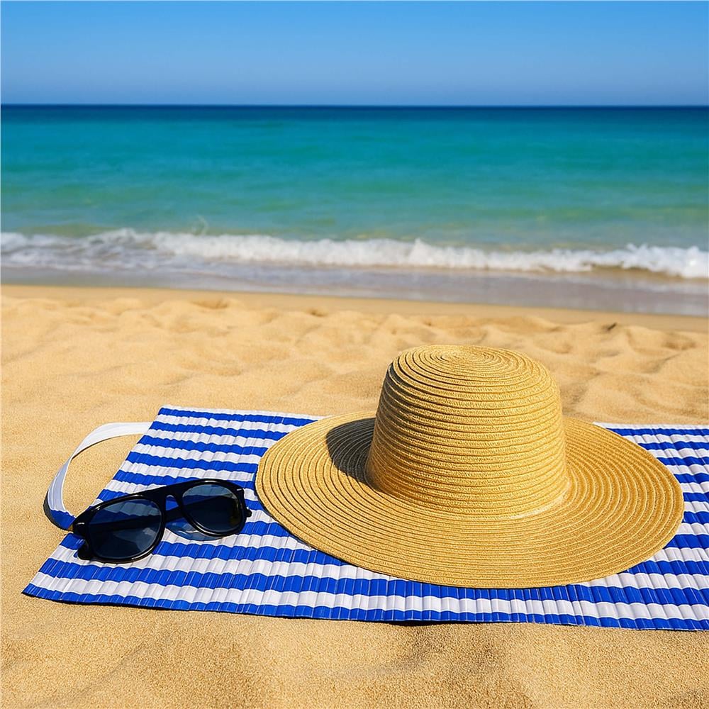 Specificatii tehnice: Tip produs: Saltea de plaja Material: Poliester, spuma EPE Culoare: Albastru inchis si alb (model cu dungi) Dimensiuni extinsa: 180 x 60 x 1 cm Dimensiune rulat: Ø aproximativ 15 cm Distanta intre cusaturi: 3 cm Lungime trocuri de prindere: 45 cm Lungime maner transport: 36 cm Latime maner: 2 cm Partea inferioara: Albastru simplu Accesorii: Maner de transport, trocuri fixe pentru prindere Scurta descriere: Aceasta saltea de plaja din spuma EPE si poliester este perfecta pentru zone nisipoase sau pietroase. Designul pliabil, cu maner textil si trocuri de fixare, o face ideala pentru vacante, picnicuri sau camping. Materialele rezistente si forma compacta garanteaza confort si durabilitate pe termen lung. Caracteristici principale: Usoara si compacta, ideala pentru calatorii Interior din spuma confortabila, cu cusaturi paralele Pliaza-se usor si ramane rulata cu trocuri fixe Maner textil larg, confortabil pentru transport Design in dungi alb-albastru, modern si estival Se usuca rapid si nu se ruleaza singura Recomandata pentru plaja, picnic, camping si iesiri cu copiii Partea de jos simpla, pentru stabilitate pe sol Usor de curatat si intretinut