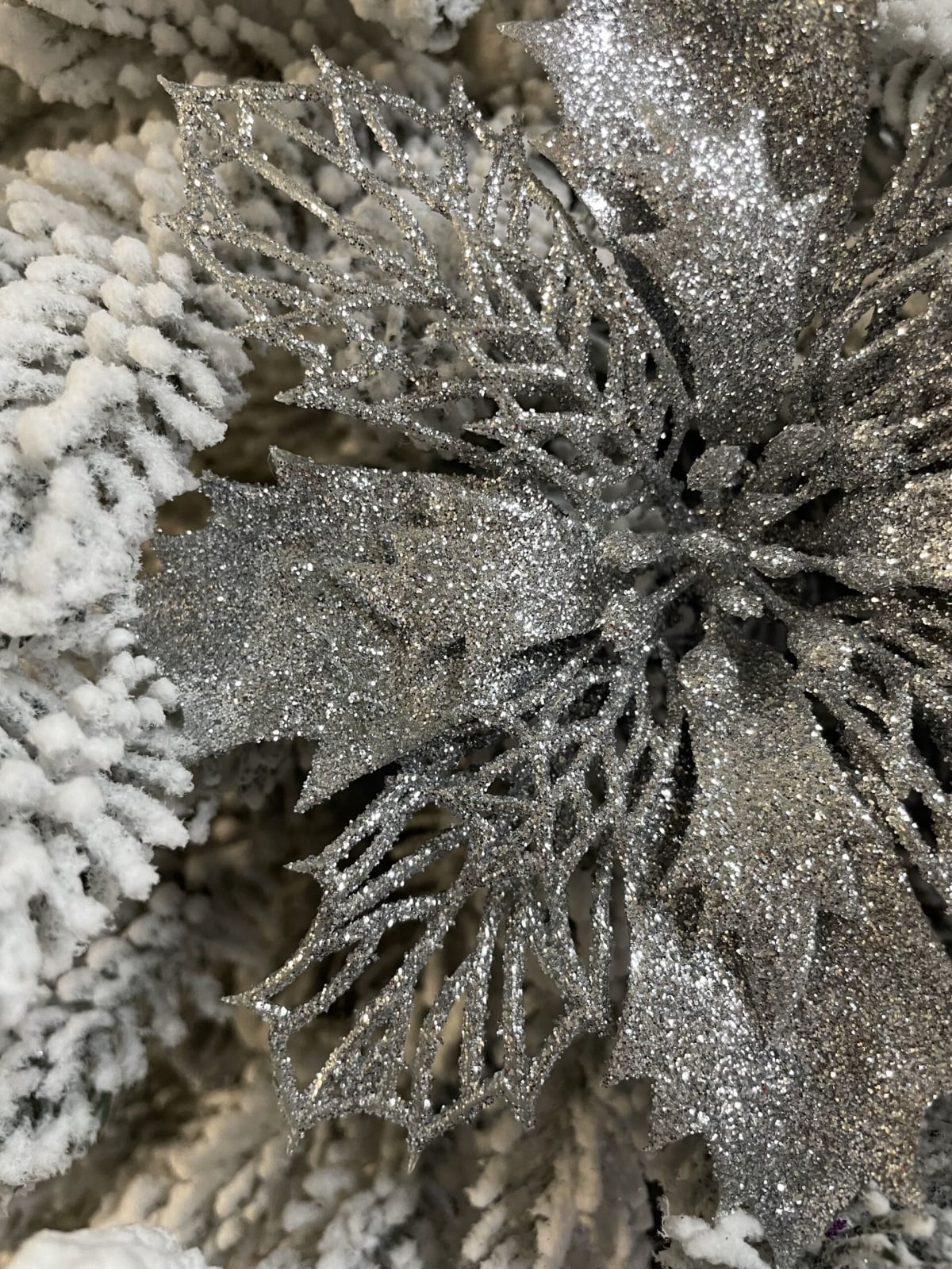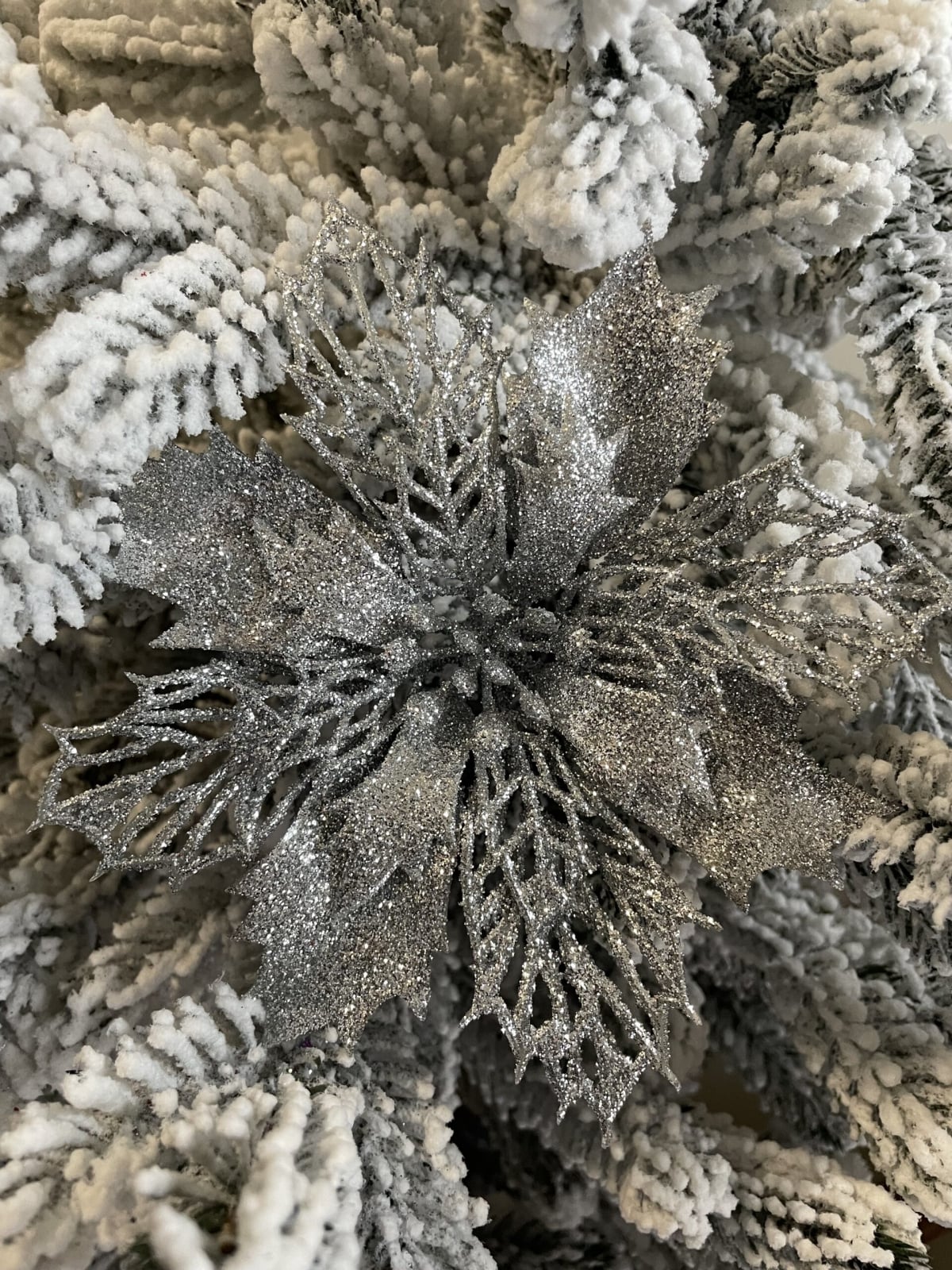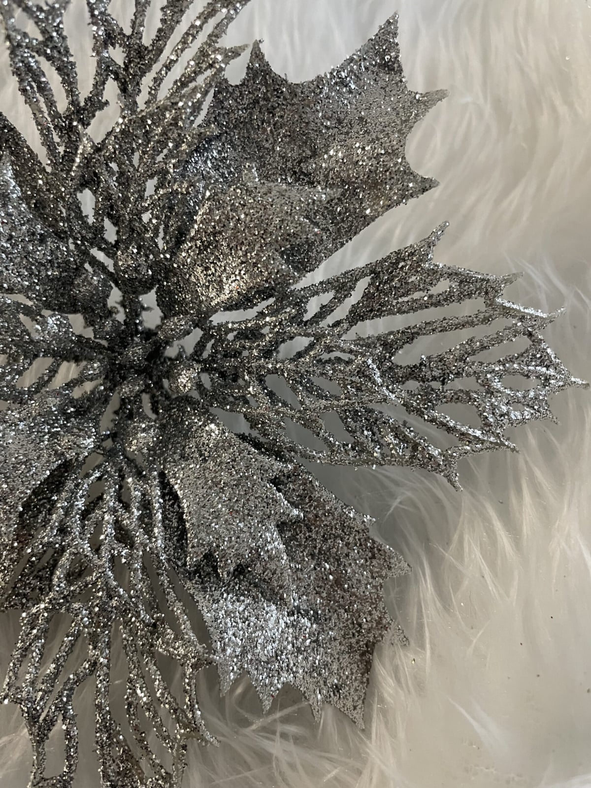 Set 10 ornamente pentru bradul de Craciun, stea Poinsettia, 16cm, argintiu
