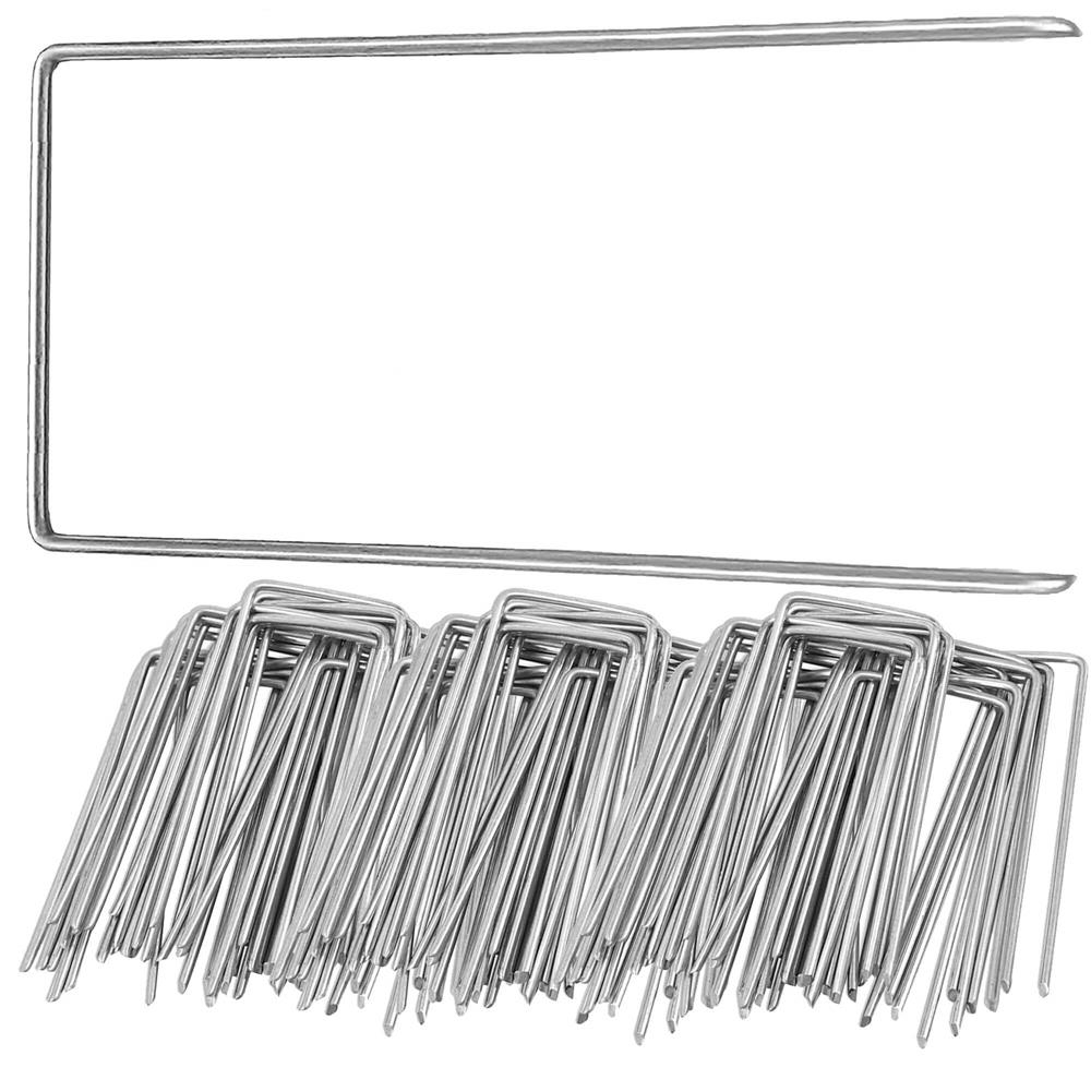 Set 100 ancore metalice pentru fixare agrotextil, 15x7 cm, argintiu