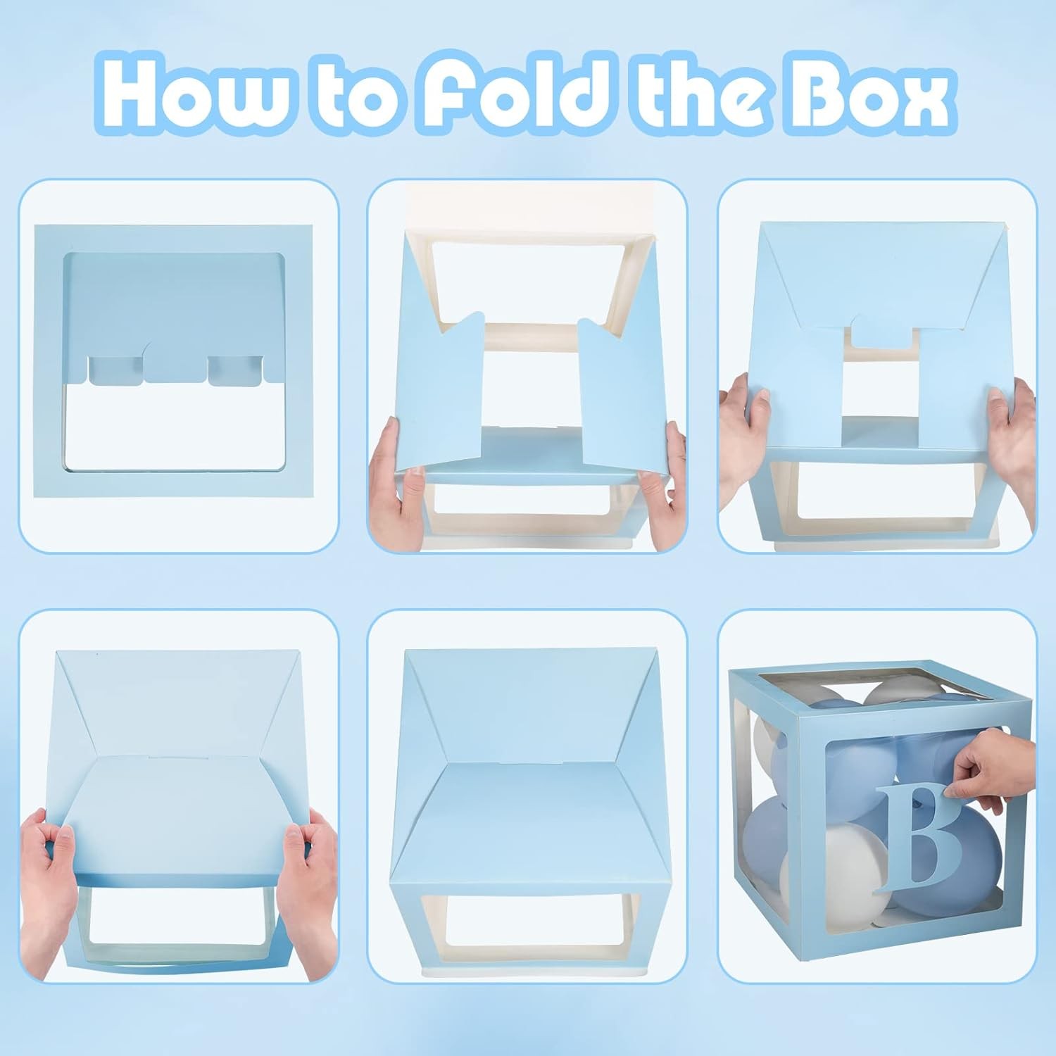 Fiecare cutie este decorată cu un contur albastru, evocând o atmosferă jucăușă și elegantă, perfectă pentru tematica micuțului tău. Materialul de calitate superioară asigură nu doar un aspect estetic deosebit, ci și o rezistență optimă, fiind capabile să susțină cu ușurință baloanele și alte accesorii decorative.