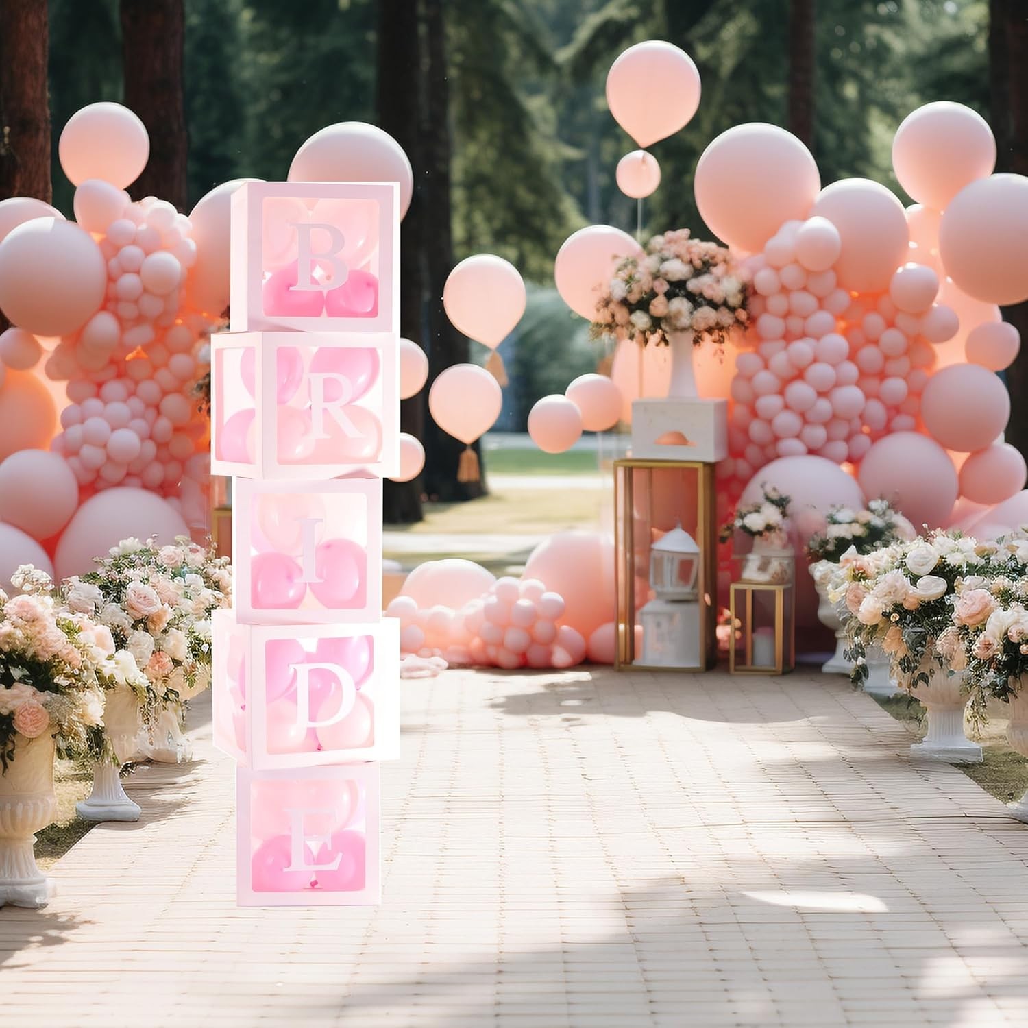 Set 5 Cutii pentru Baloane - Scris Bride, Contur Alb- 30x30 cm