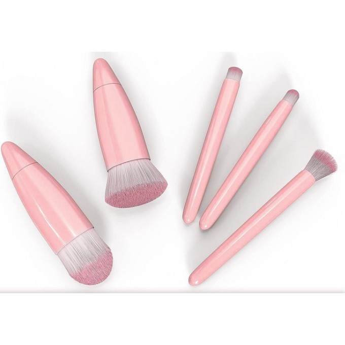 Setul de machiaj cu 5 pensule este ideal pentru fixarea si retusarea machiajului, iar datorita carcasei pentru depozitare cu oglinda si dimensiunilor mici ale pensulelor, este usor de transportat in geanta sau bagaj, fara a ocupa mult spatiu. Contine 5 pensule de machiaj de mici dimensiuni confectionate din peri moi la atingere ce nu irita pielea.