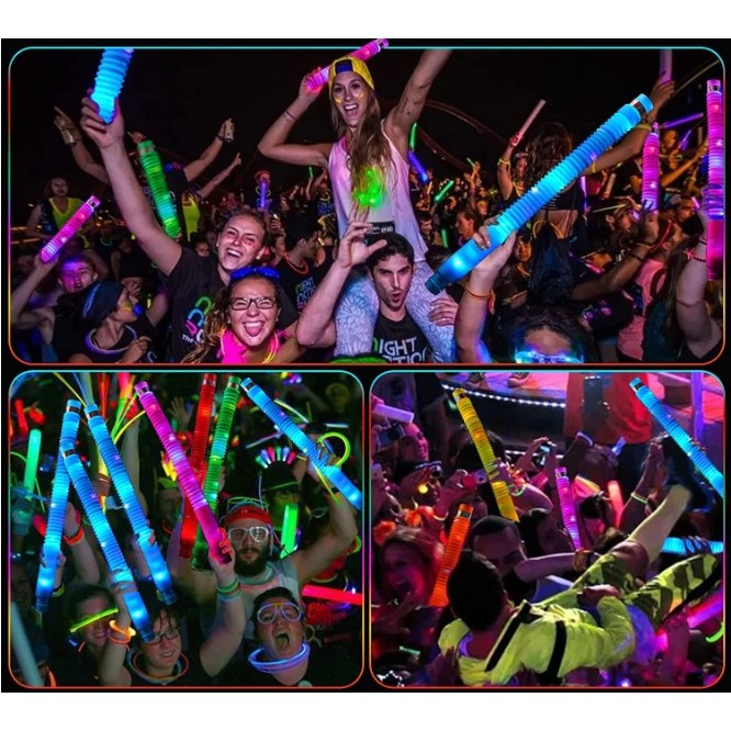 Set 6 Tuburi Antistres, , cu Lumina LED, Fidget Pop Tube, multicolor