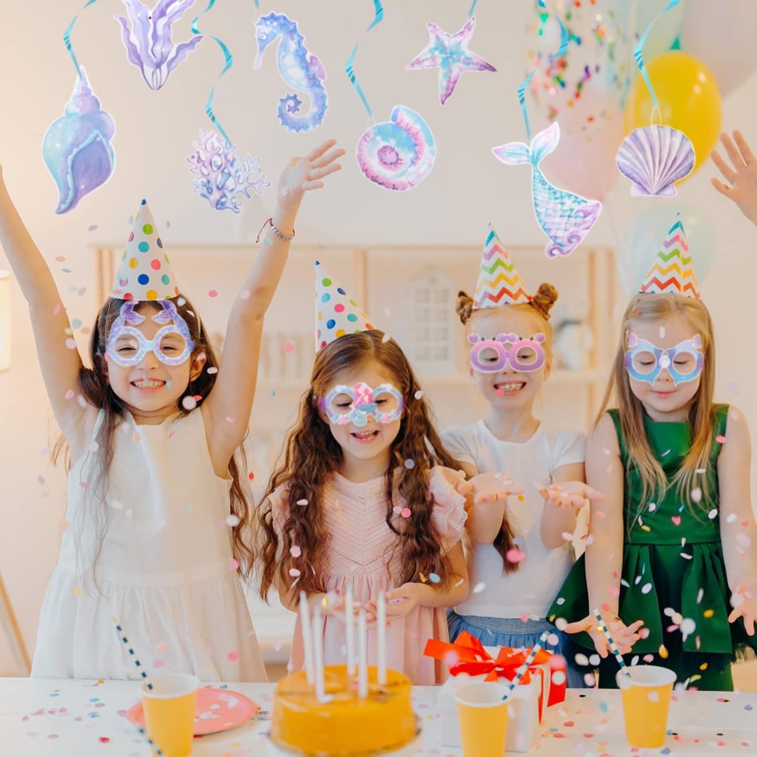Transformă orice petrecere într-un tărâm magic cu setul de ochelari tematici din colecția Mermaid! Perfecți pentru sesiuni foto, distracție și voie bună, acești ochelari aduc un plus de farmec și culoare oricărui eveniment.