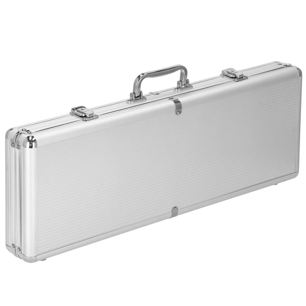Culoare: multicolor Dimensiuni valiza: 56,5 cm x 6,5 cm x 20,5 cm 500x jetoane 2x pachet de carti de hartie 1x Jeton de functie „Dealer”. 5x de zaruri 2x chei Ambalaj estetic sub forma de valiza Dimensiuni: Covoras: 90,5 cm x 57,5 ​​cm Valisa este impartita in 9 compartimente: 10x compartimente: lungime aproximativ 18 cm, latime 4 cm 2x compartimente: lungime 9,5 cm, latime 7 cm 1x compartiment: lungime 9,5 cm, latime 2,5 cm Ambalaj pentru un pachet de carti: 9 cm x 6,5 cm Diametrul jetonului: 3,8 cm Diametrul jetoanelor de functie: 4,9 cm Zaruri: 1,7 x 1,7 cm Lungime cheie: 3 cm Jetoanele sunt impartite in 5 culori diferite: 100x negru 100x albastru 100x verzi 100x rosu 100x alb In denumiri: 1,5,10,25,50 Informatii suplimentare: Stratul interior superior al capacului valizei este acoperit cu un material moale (burete) pentru a proteja interiorul setului de poker. Valisa este echipata cu un maner practic de transportInchideri magnetice pentru valize Un set de poker nu este doar o modalitate excelenta de a petrece timp cu prietenii, ci si un cadou perfect pentru iubitorii de jocuri de carti. Aspectul si functionalitatea sa profesionala atrag atat jucatori experimentati, cat si incepatori, facand fiecare joc de poker un eveniment de neuitat. Distreaza-te si bucura-te de acest set elegant de poker! Calitata inalta a manoperei: Setul contine carti, jetoane si accesorii de cea mai inalta calitate care asigura durabilitate si placere in timpul jocului. Accesorii necesare jocului: jetoane, carti, zaruri, covoras Portabilitate si design compact: Datorita carcasei special concepute, setul este usor de transportat, permitandu-va sa va organizati jocul de poker oriunde. Multe optiuni de joc: Setul ofera o varietate de accesorii care permit diferite variante de poker si alte jocuri de carti, garantand ore lungi de distractie grozava. Aspect estetic: Designul elegant al valizei si materialele de inalta calitate confera setului un aspect profesional care va va incanta prietenii. Setul de poker se distinge prin abordarea profesionala a jocului. Materialele de cea mai inalta calitate asigura nu doar durabilitate, ci si placere in timpul utilizarii. A fost realizata cu atentie la cel mai mic detaliu, ceea ce atrage si mai multi oameni interesati. Indiferent daca organizati un joc cu prietenii sau organizati intalniri mai formale, acest set cu siguranta va sublinia caracterul evenimentului si ii va conferi un farmec unic.   Seara cu prietenii: Setul este perfect pentru intalnirile acasa cu prietenii, permitandu-ti sa organizezi jocuri de carti interesante. Evenimente speciale: duceti setul la zile de nastere, sarbatori sau alte ocazii pentru a face timpul invitatilor dvs. mai placut. Calatorii si calatorii: Datorita valizei compacte, puteti lua setul in calatorii si va puteti bucura de jocul de poker oriunde.