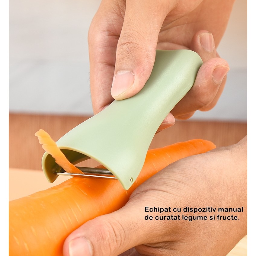 Multifuncționalitate remarcabilă: Setul oferă o varietate de instrumente într-un singur pachet, cum ar fi foarfeca pentru bucătărie, curățătorul de legume tip suport și spărgătorul de nuci integrat in foarfeca. Această versatilitate îți permite să economisești spațiu în bucătărie și să ai tot ce ai nevoie la îndemână.