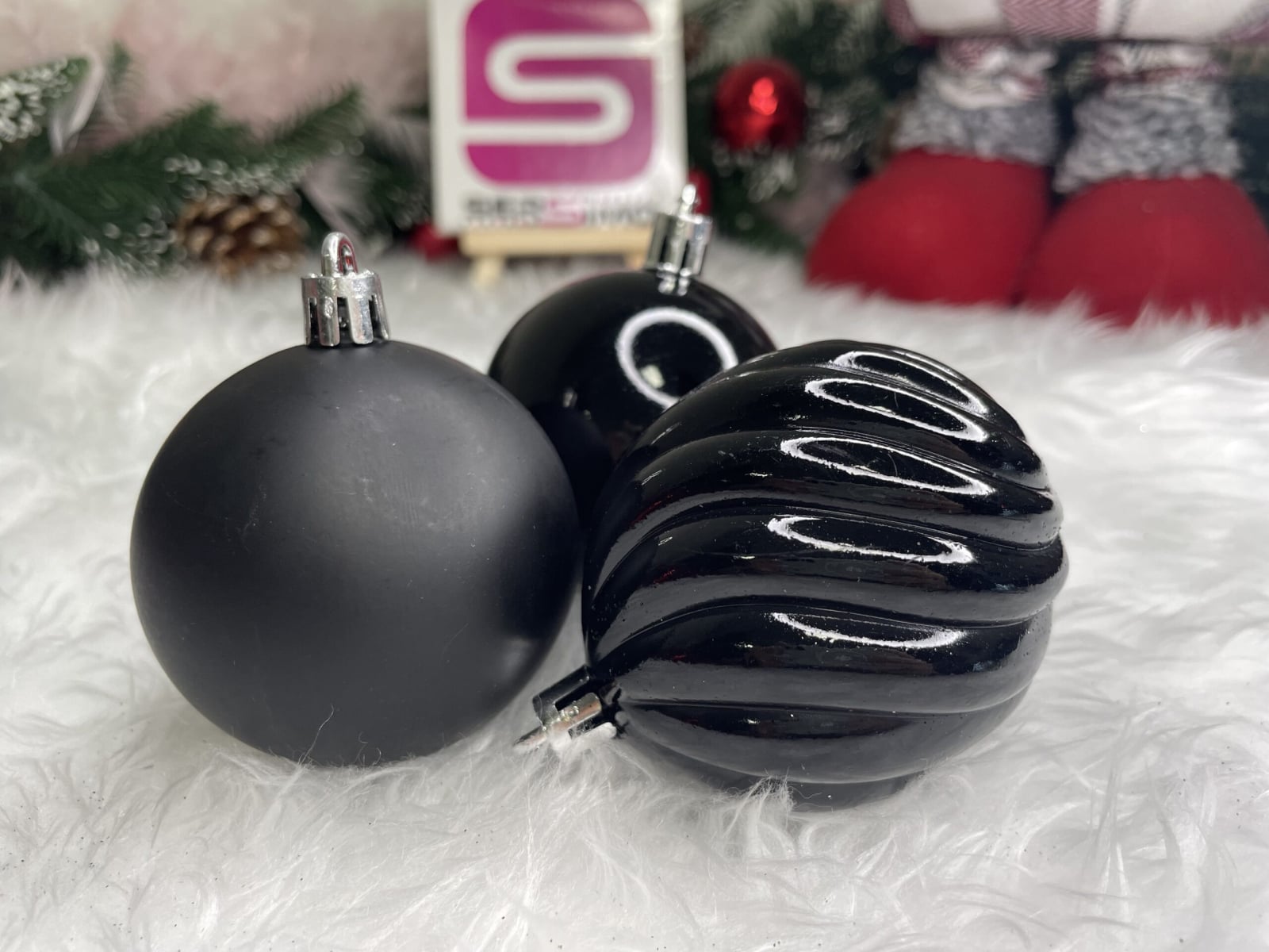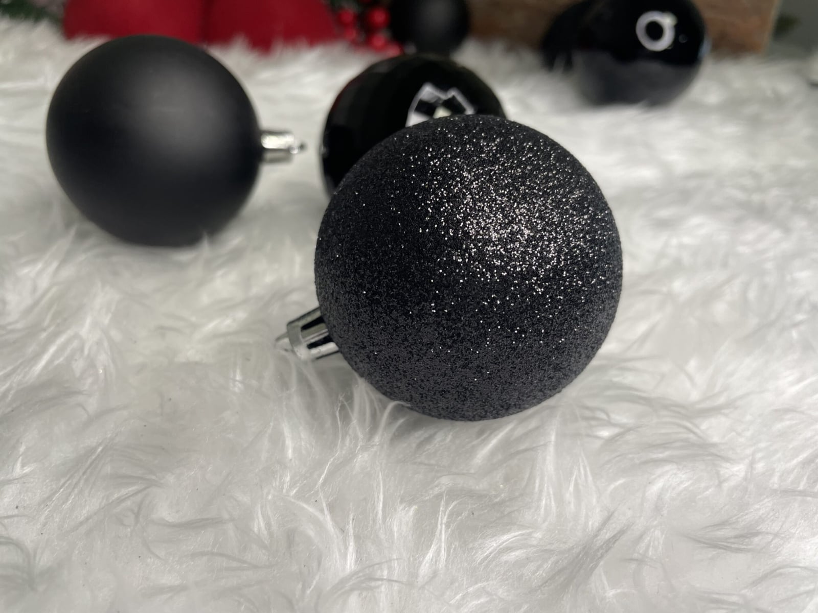 Culoare: negru Material: plastic/plastic Dimensiune: 6 cm Cantitate: 20 de globulete Modele: mat, cu sclipici, cu paiete, cu paiete, in relief si bile disco (5...
