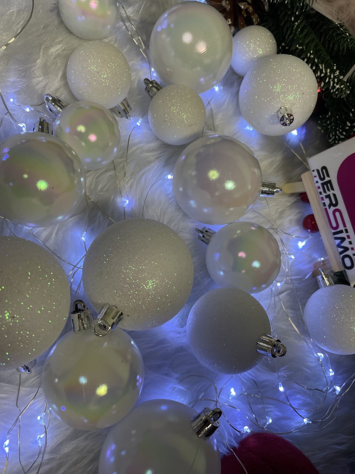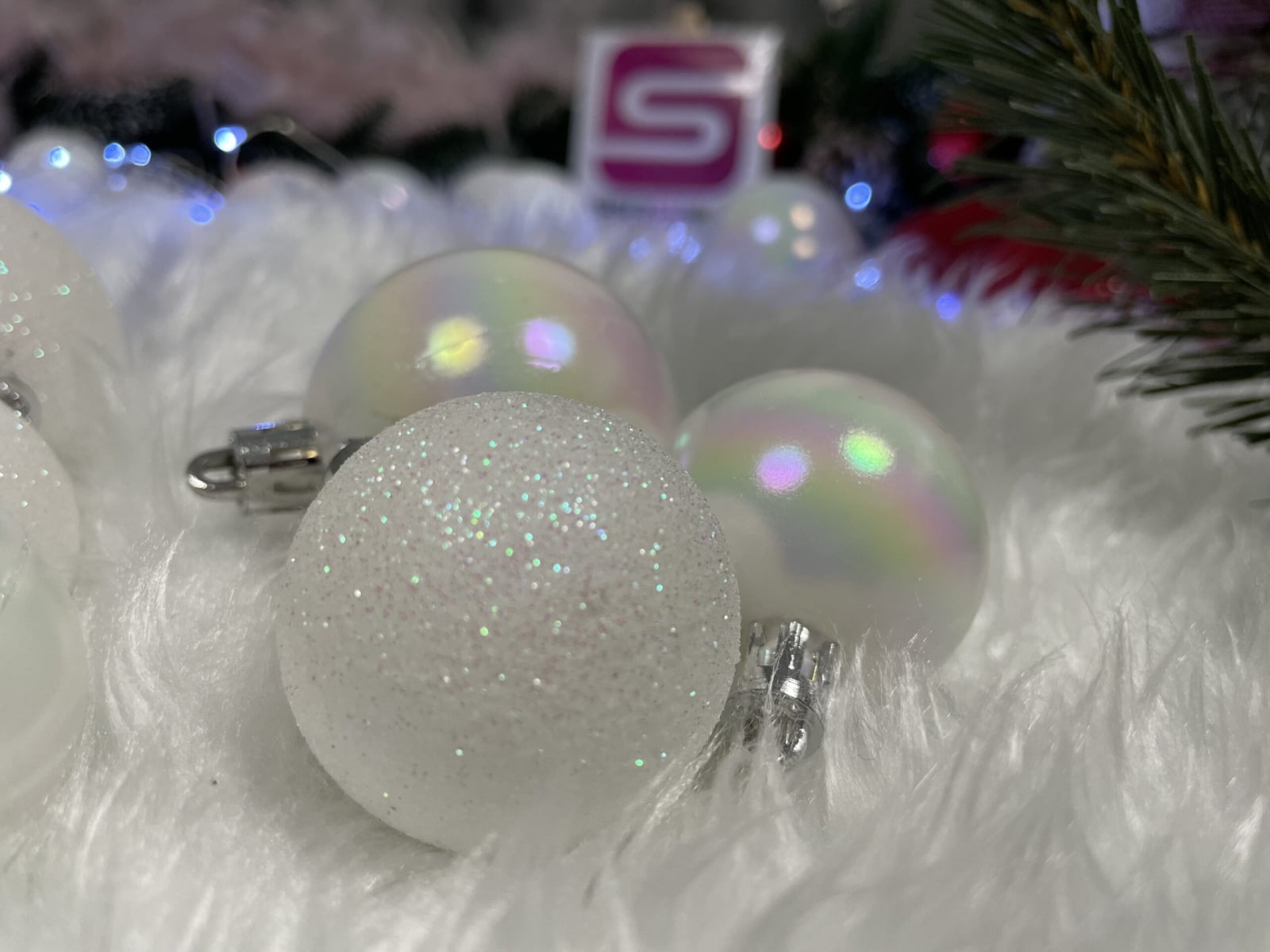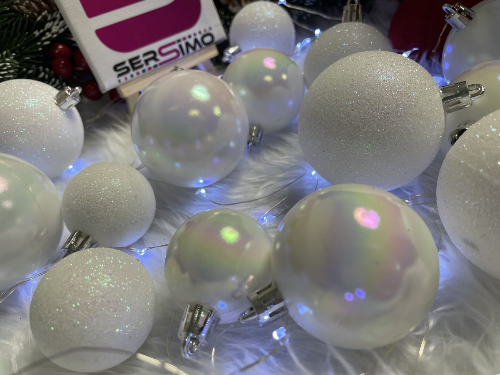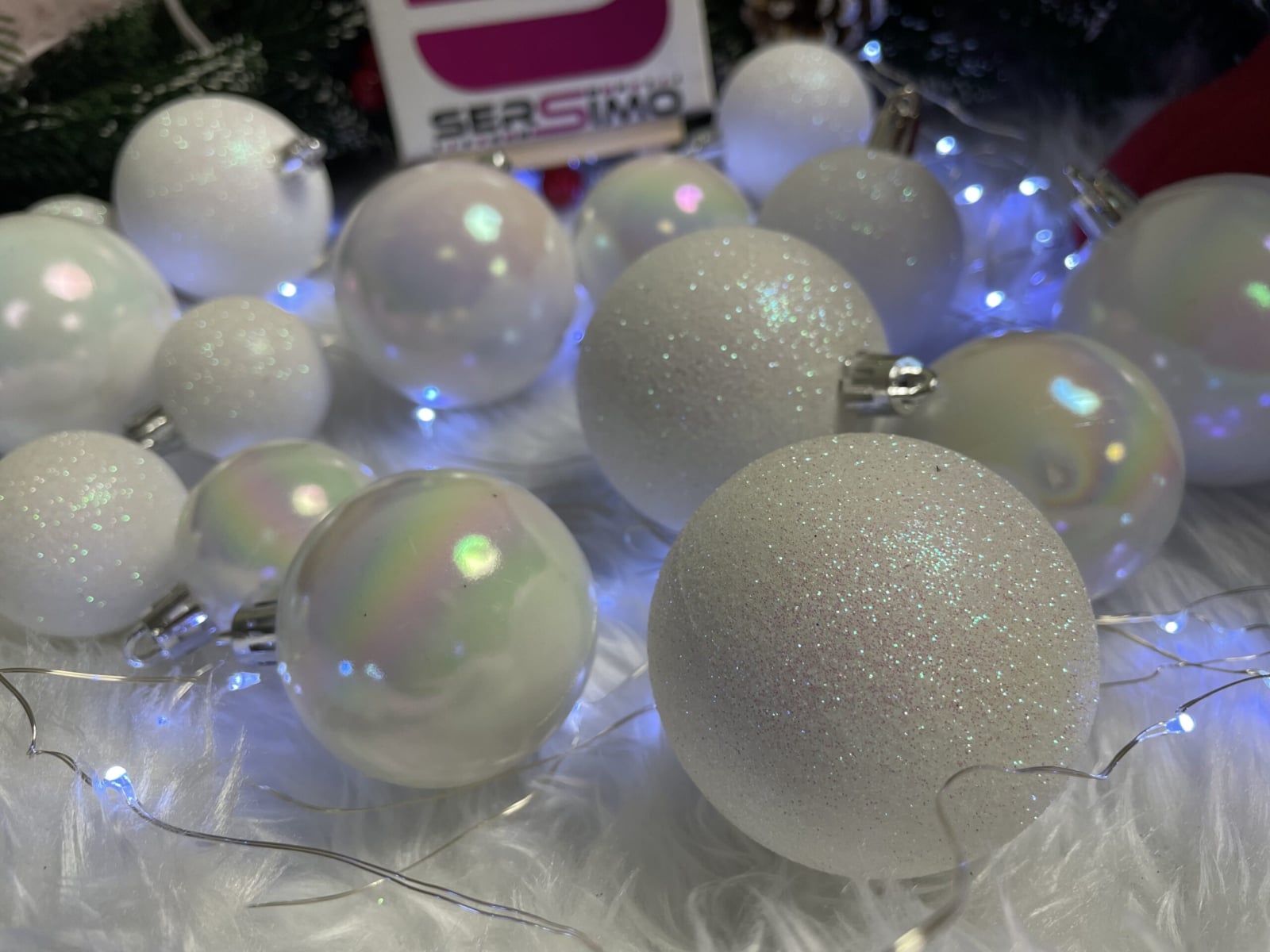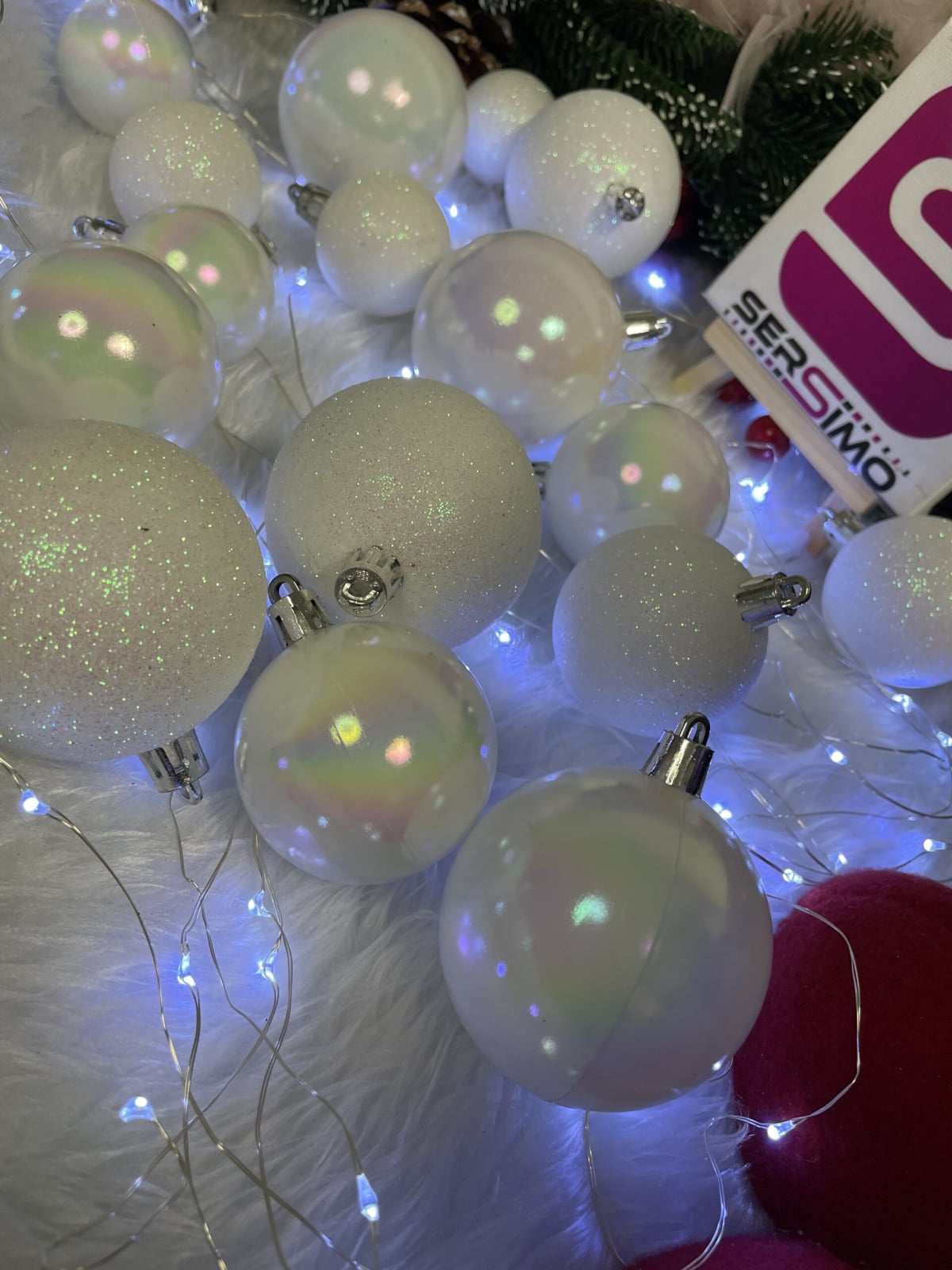 Culoare: alb Material: plastic Cantitate: 30 de globulete Dimensiune: 6/5/4 cm Modele: mat, sclipici, perlat Incasabil, snur pentru agatat Craciunul, ca si intreaga perioada de...
