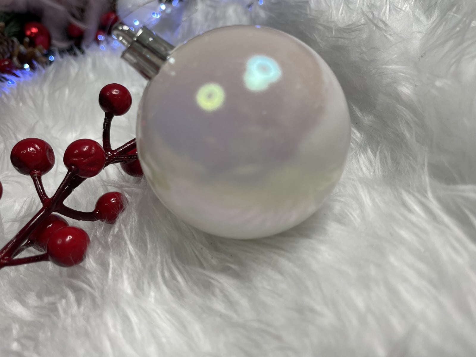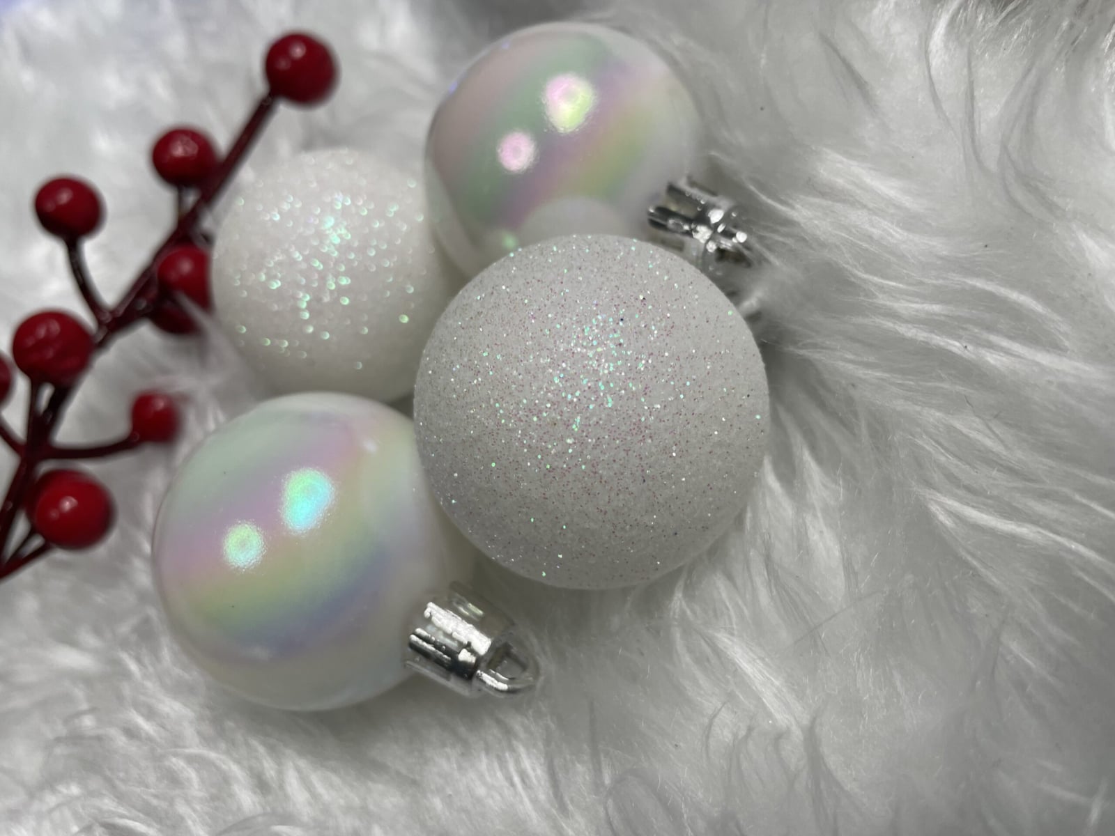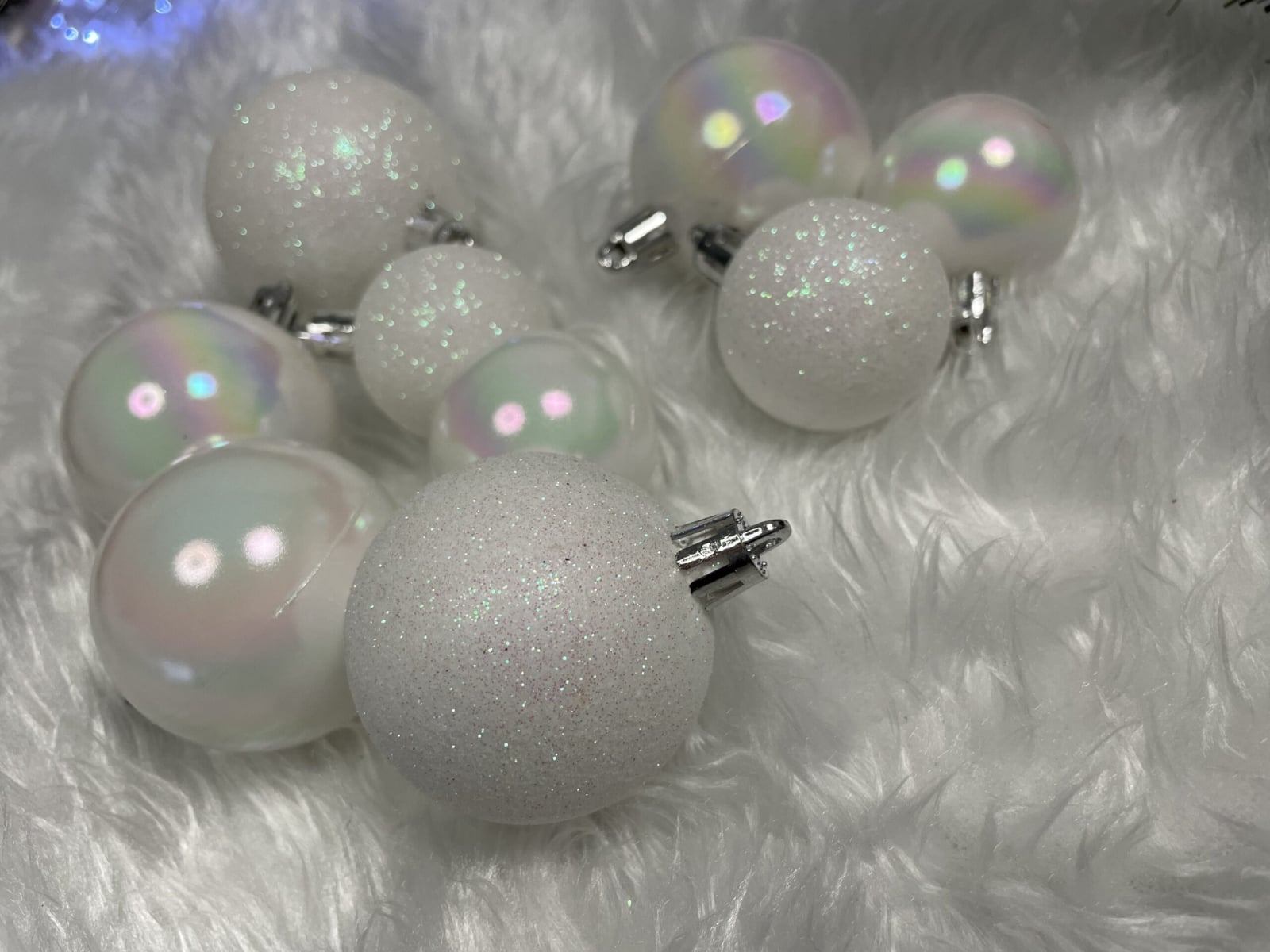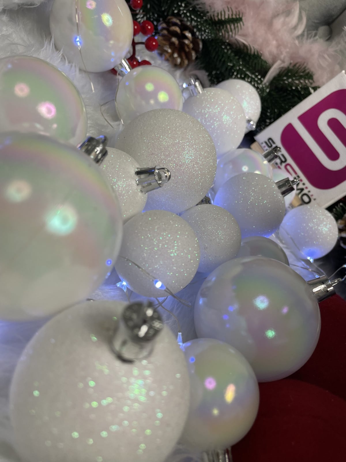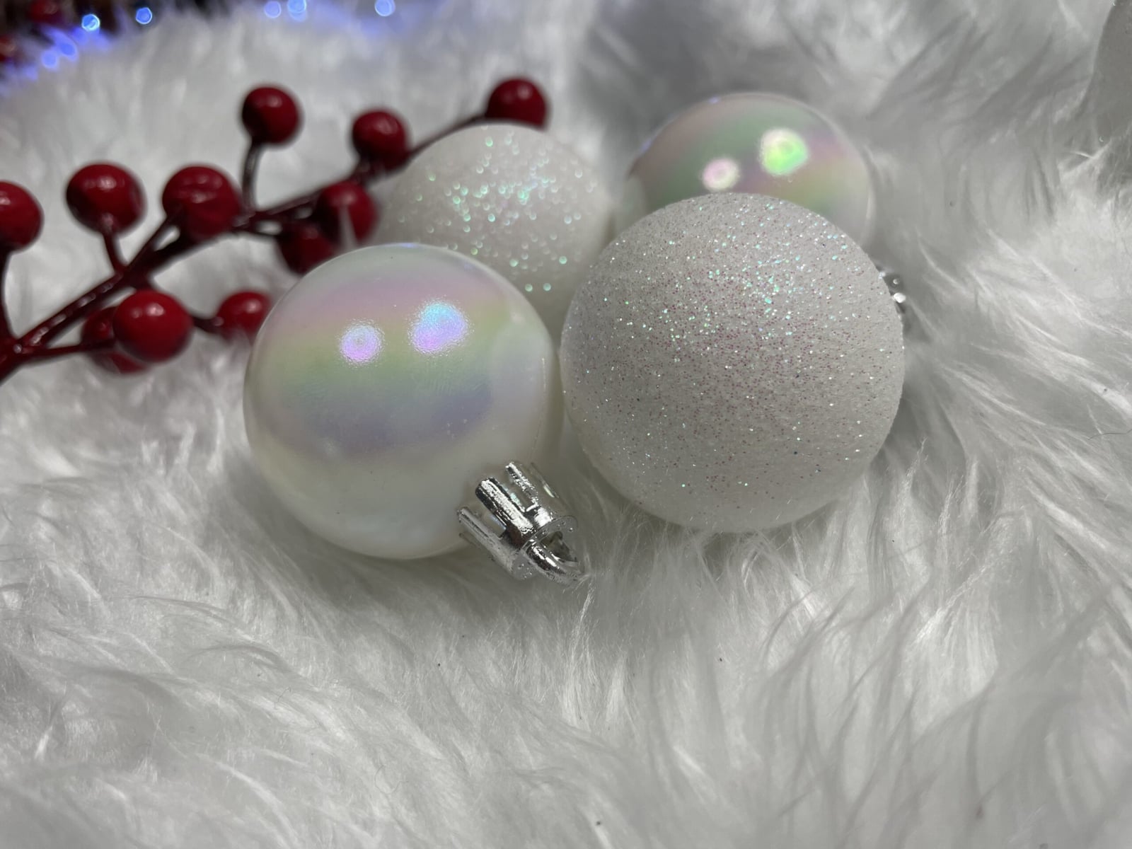 Culoare: alb Material: plastic Cantitate: 30 de globulete Dimensiune: 6/5/4 cm Modele: mat, sclipici, perlat Incasabil, snur pentru agatat Craciunul, ca si intreaga perioada de...