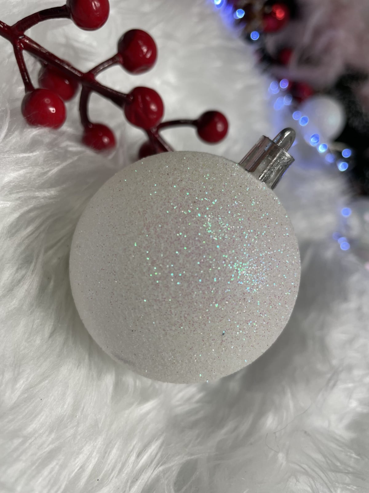 Culoare: alb Material: plastic Cantitate: 30 de globulete Dimensiune: 6/5/4 cm Modele: mat, sclipici,  perlat Incasabil, snur pentru agatat Craciunul, ca si intreaga perioada de iarna, este o perioada magica, plina de caldura si de o atmosfera unica, creata datorita unui spectacol de decoratiuni fabuloase si constelatii luminoase incantatoare. Designul din plastic creste siguranta datorita materialului incasabil. Alegerea lor in locul globurilor de sticla va contribui la siguranta celor mici din casa. Globuletele pentru bradul de Craciun arata la fel ca cele din sticla. Datorita suprafetei lor netede ca o oglinda si a finisajului cu sclipici, acestea reflecta lumina in mod fantastic, sporind efectul de decoratiuni sclipitoare si stralucitoare, care aduc in minte asocieri cu un peisaj de iarna rece si inzapezit. Globuletele pentru bradul de Craciun va vor permite sa va decorati casa de Craciun intr-un mod nelimitat. Puteti crea din ele:  Aranjamente unice pentru bradul de Craciun  Aranjamente de masa si de pervaz  Decoratiuni pentru usi si ornamente pentru rame de usa  Cadouri practice de Craciun pentru cei dragi  Impachetari unice pentru cadouri - folositi mai multe in loc de funda