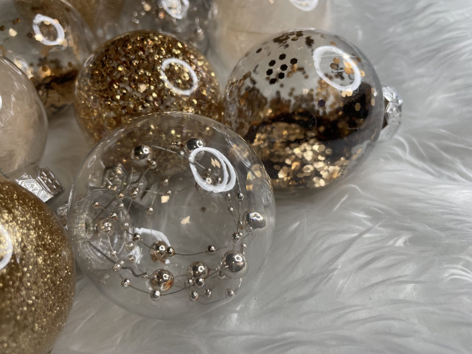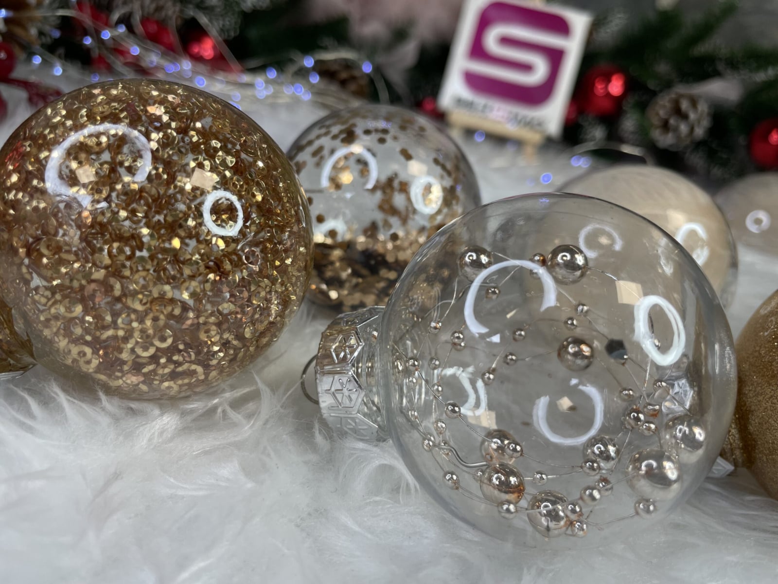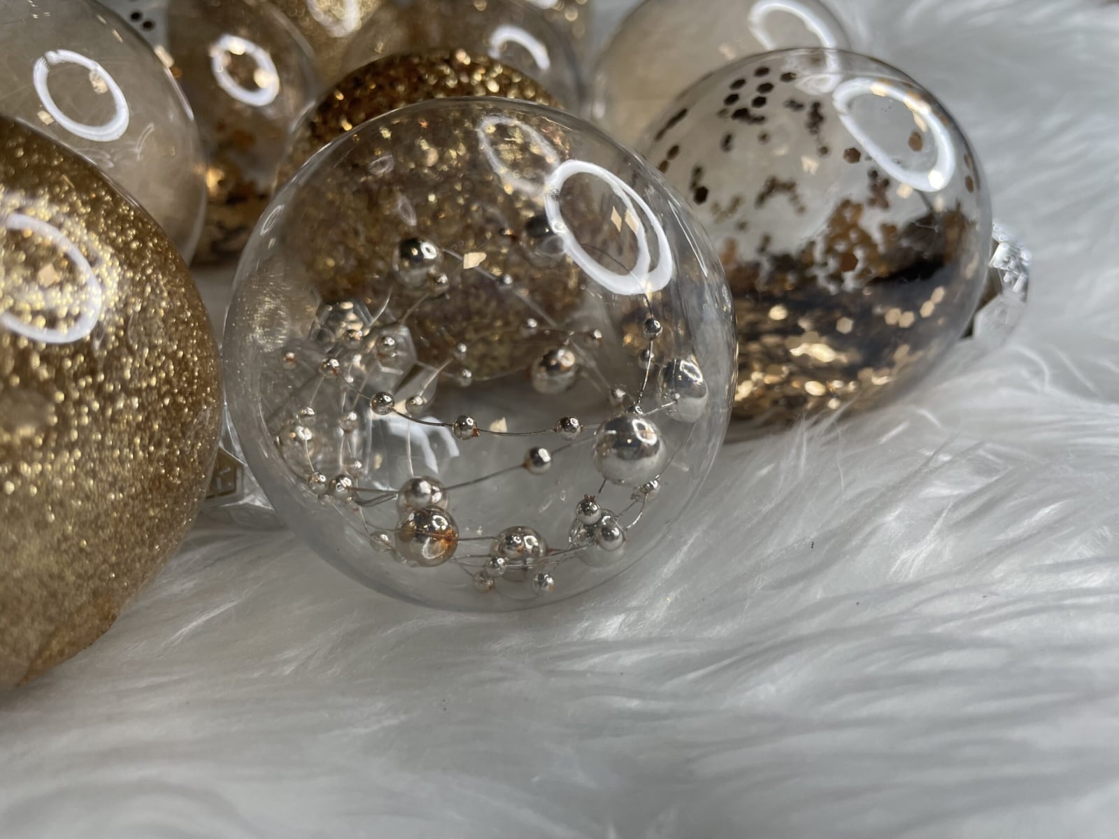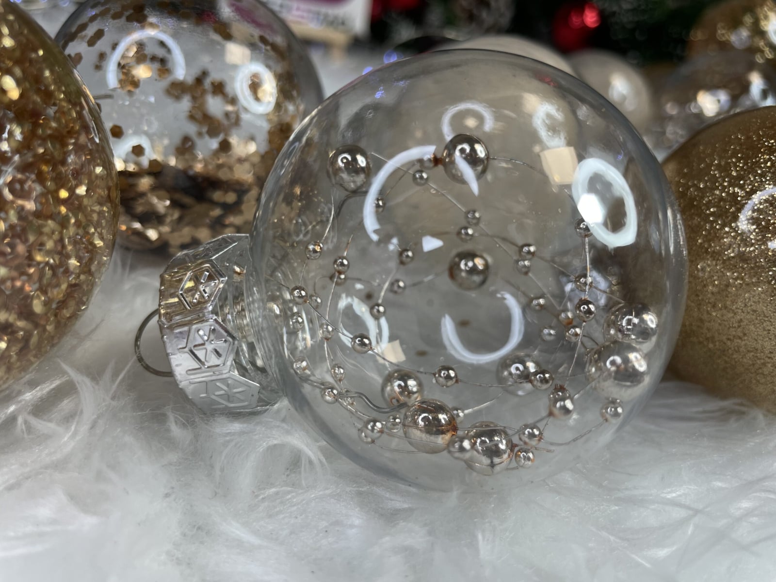 Set globuri de Craciun Inedit, 30 bucati, 6cm, transparente si auriu