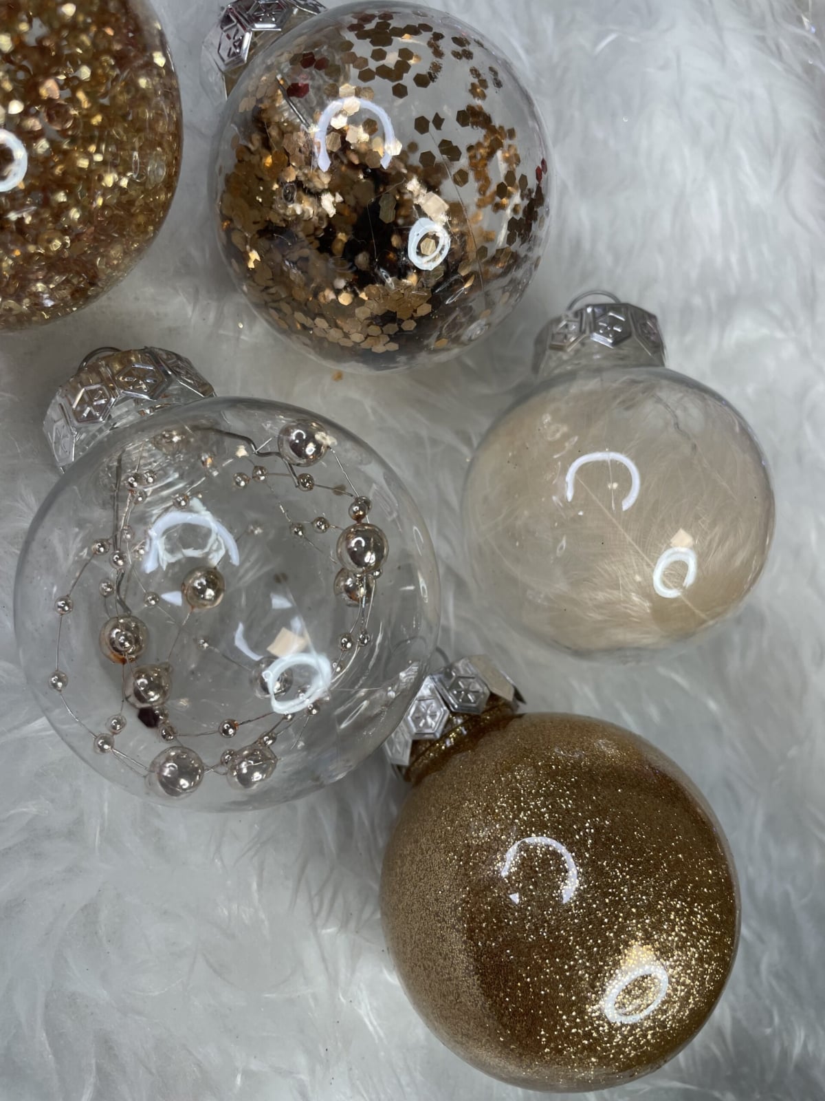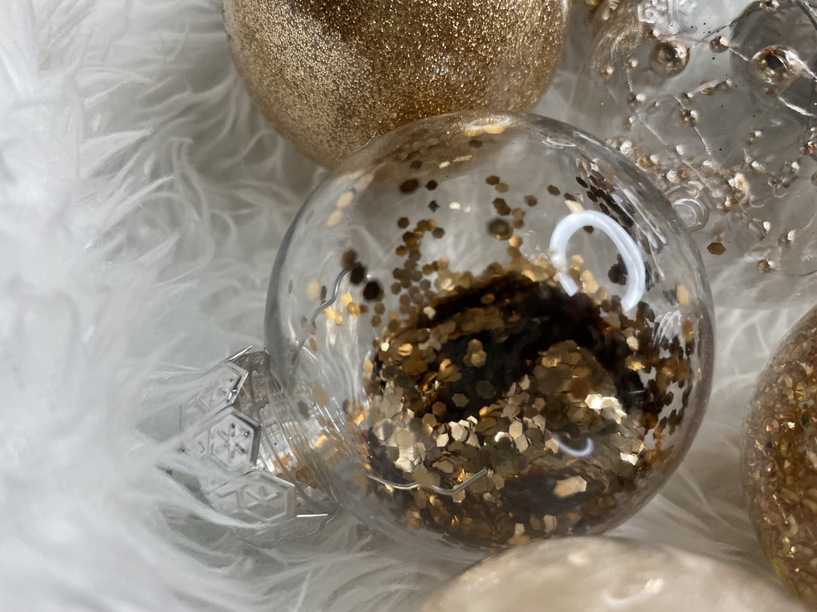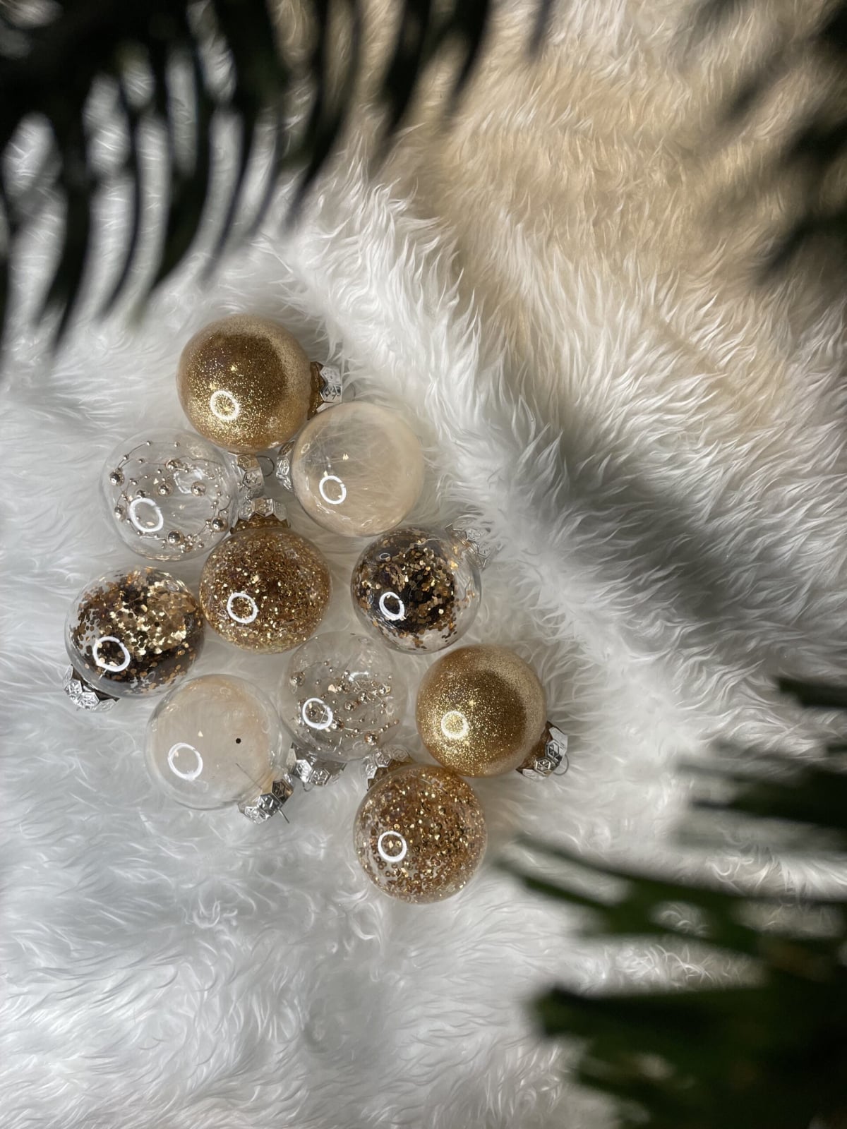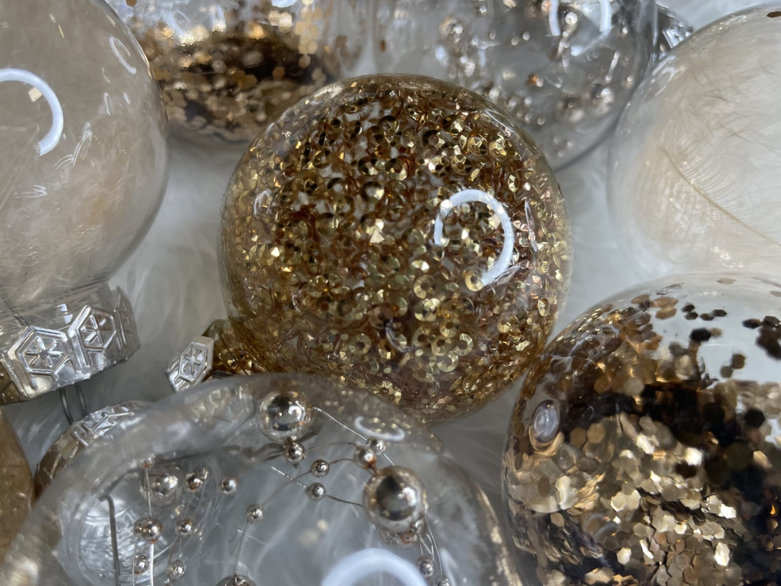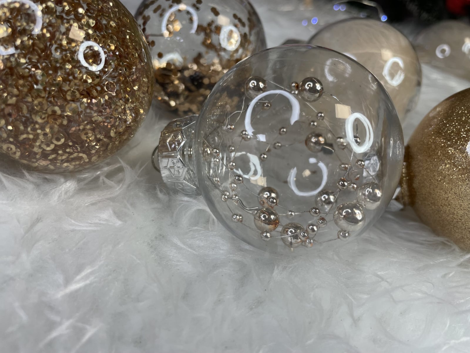 Set globuri de Craciun Inedit, 30 bucati, 6cm, transparente si auriu
