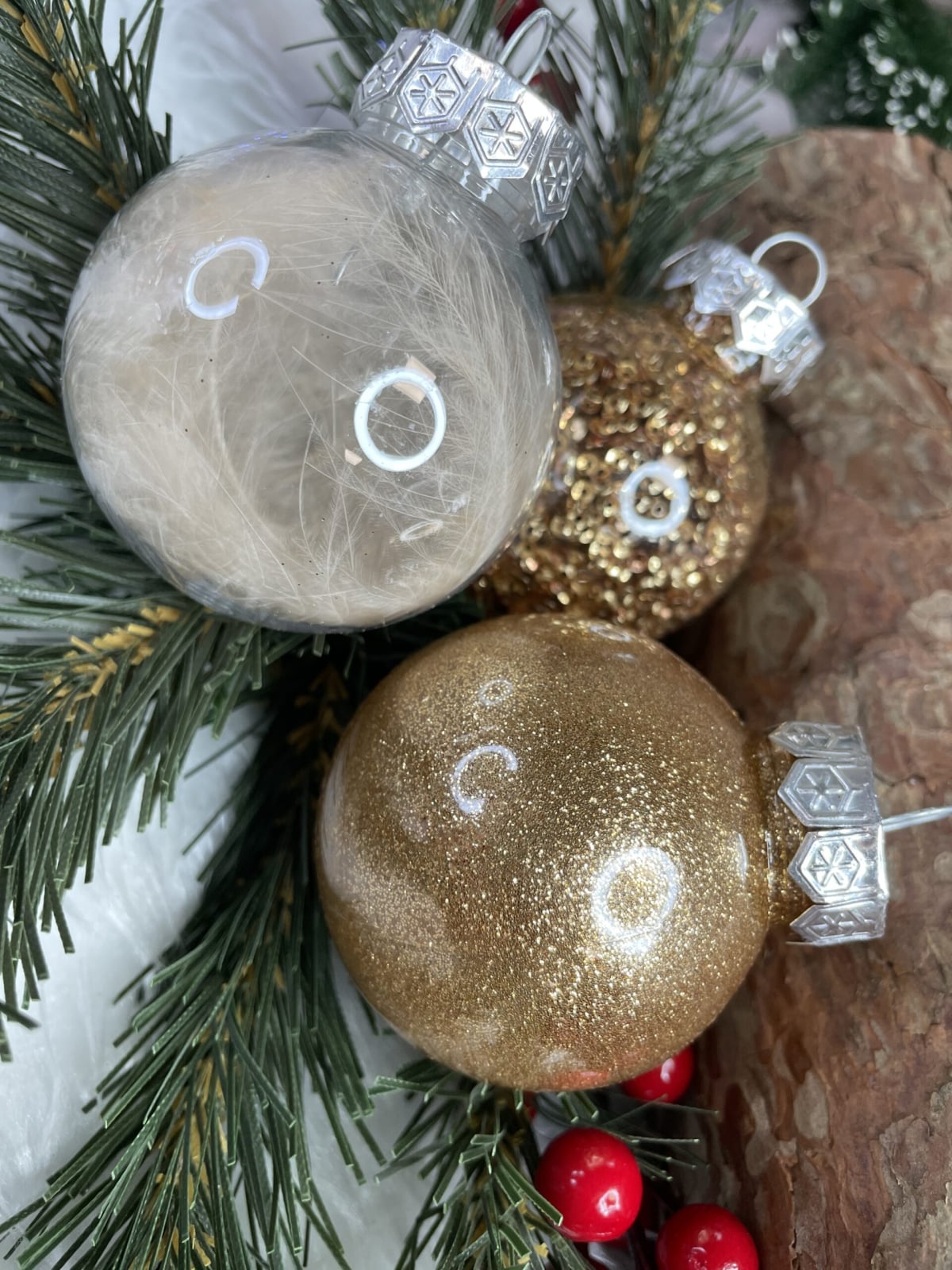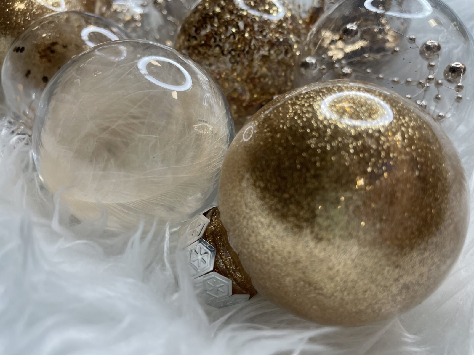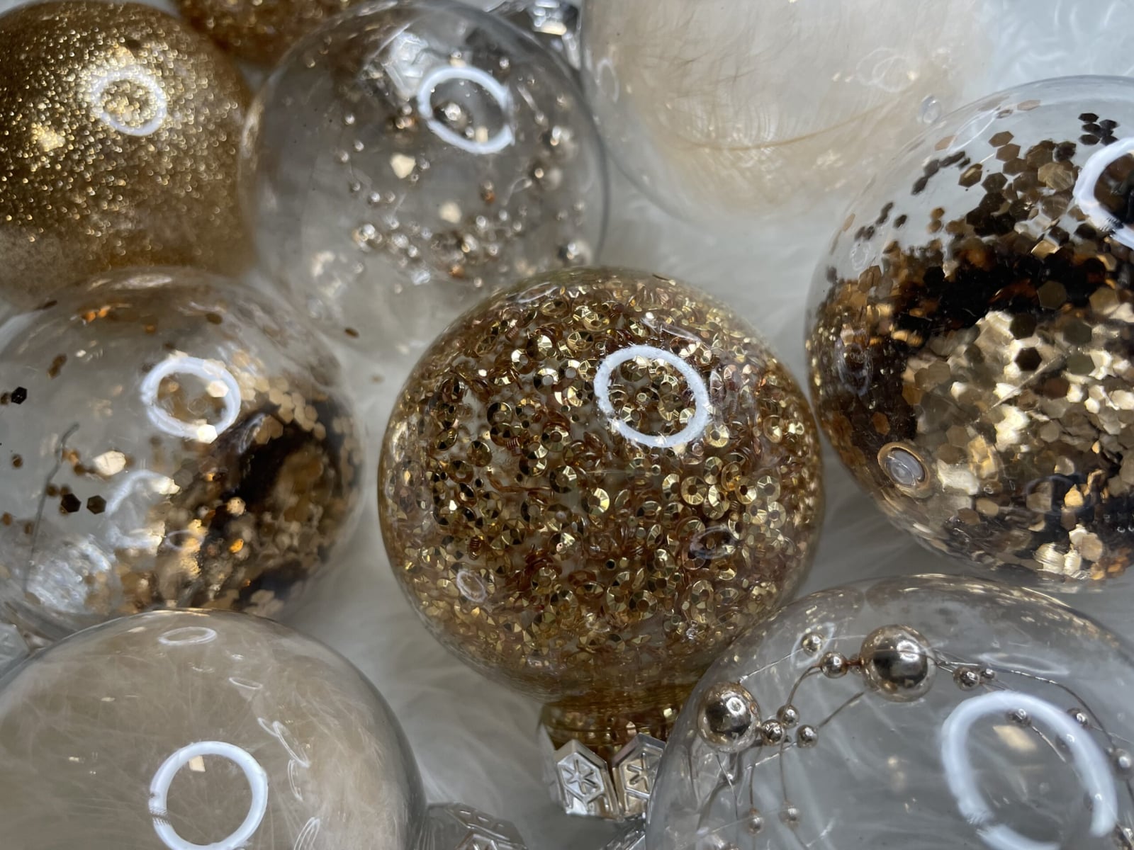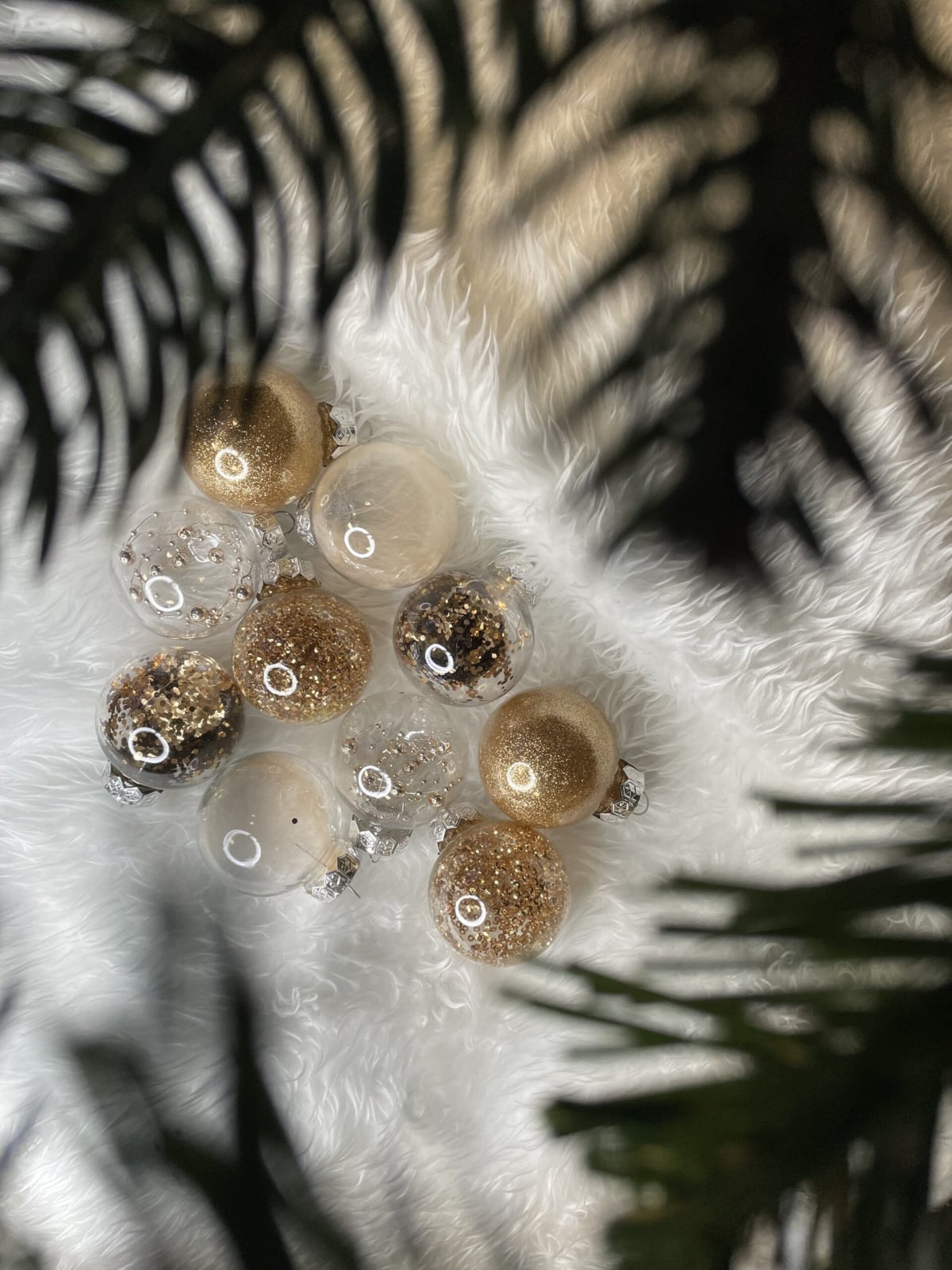 Set globuri de Craciun Inedit, 30 bucati, 6cm, transparente si auriu