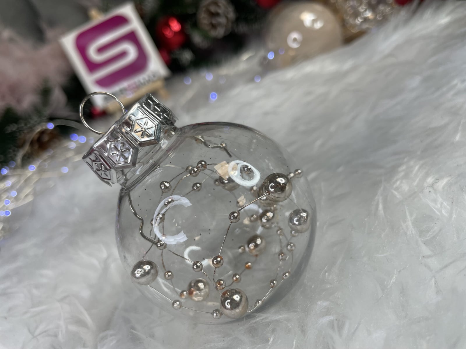 Culoare: transparent cu interior auriu si argintiu Material: plastic Cantitate: 30 de bucati de globulete Desene: modele: 5 modele diferite Incasabil, snur pentru agatat Setul...