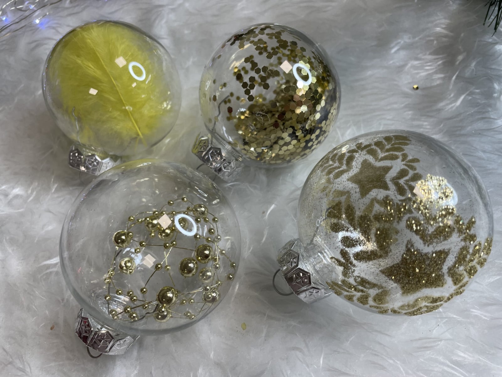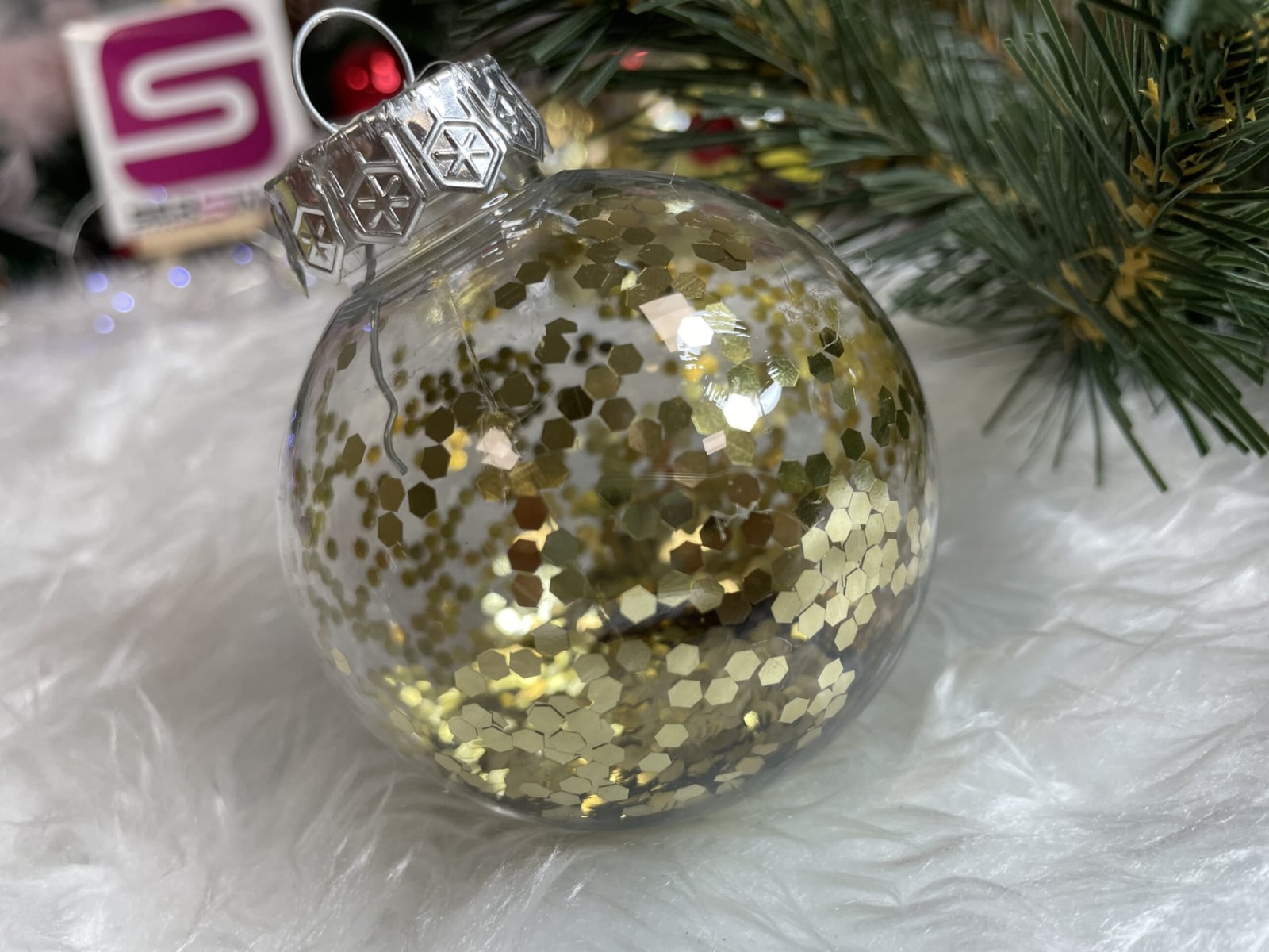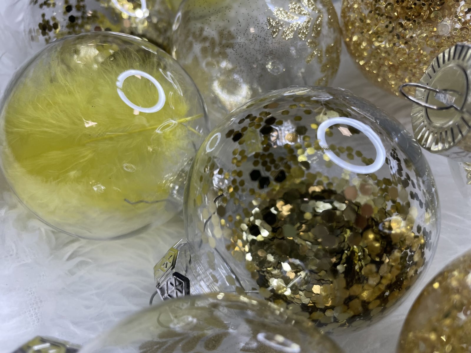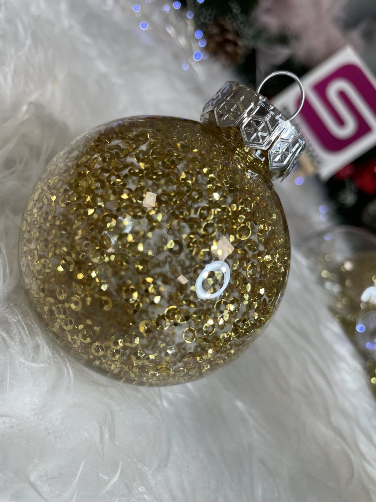 Set globuri de Craciun Inedit, 30 bucati, 7cm, transparente si auriu
