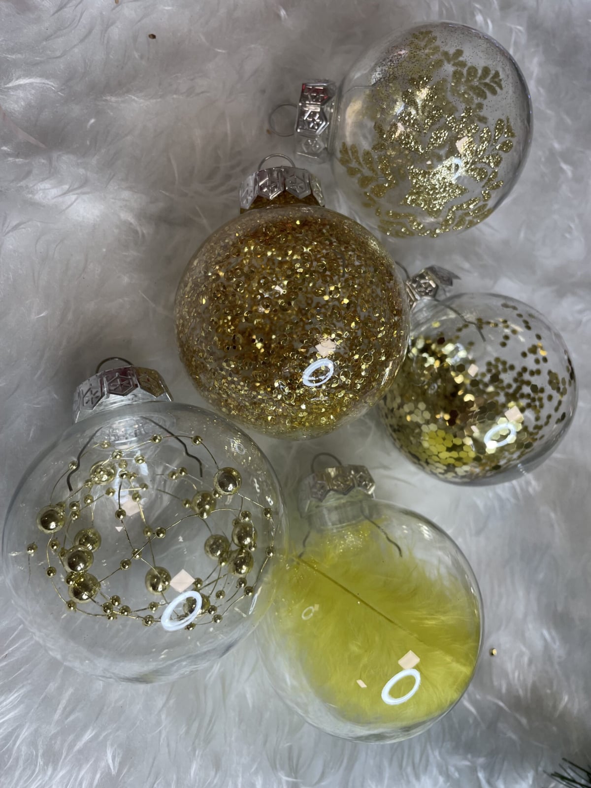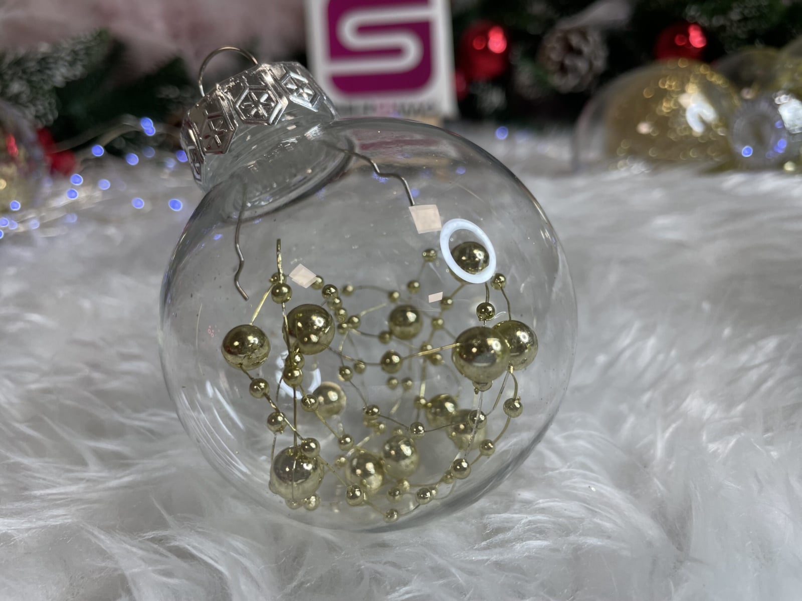Culoare: transparent cu interior auriu si galben Material: plastic Cantitate: 30 de bucati de globulete Desene: modele: 5 modele diferite Incasabil, snur pentru agatare Setul...