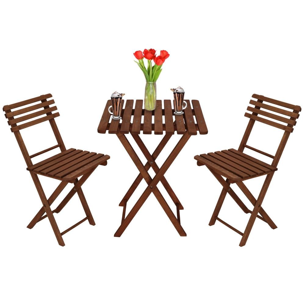 Set mobilier balcon sau terasa din lemn de fag, pliabil, masa 52x51x65 cm si 2 scaune, maro inchis