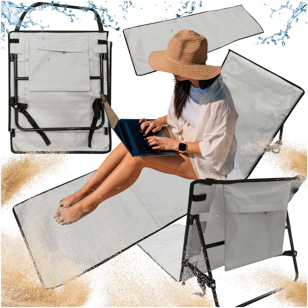 Sezlong de plaja pliabil, spatar cu cadru metalic, reglabil, 150x47 cm, gri