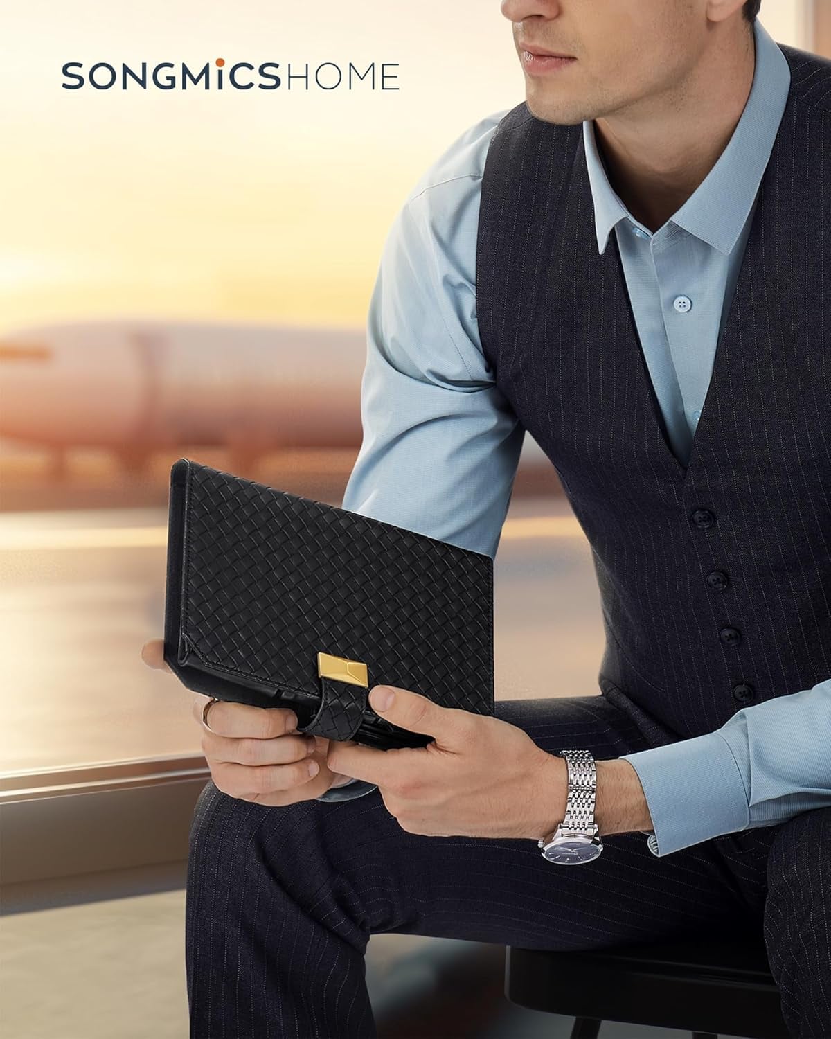 Specificatii tehnice Brand: SONGMICS Model: JWB018B01 Material: Piele PU, catifea sintetica, metal Culoare: Negru Dimensiuni: 22 x 14.5 x 4.5 cm Capacitate: 3 ceasuri + compartimente suplimentare Caracteristica speciala: Compartiment secret, curele elastice, rezistenta la socuri Scurta descriere Cutia pentru ceasuri SONGMICS Ronne Collection imbina eleganta clasica si functionalitatea inteligenta. Compacta si subtire, este ideala pentru a transporta 3 ceasuri, curele si accesorii. Dispune de un compartiment ascuns pentru carduri si documente, protejand totodata ceasurile cu interiorul moale din catifea sintetica si carcasa rezistenta. Caracteristici principale Design modern cu piele PU impletita Compartimente dedicate pentru 3 ceasuri Compartiment mare ascuns pentru documente Curele elastice pentru bratari si accesorii Interior din catifea sintetica moale pentru protectie Carcasa rezistenta la socuri pentru siguranta in calatorii Dimensiuni compacte usor de transportat