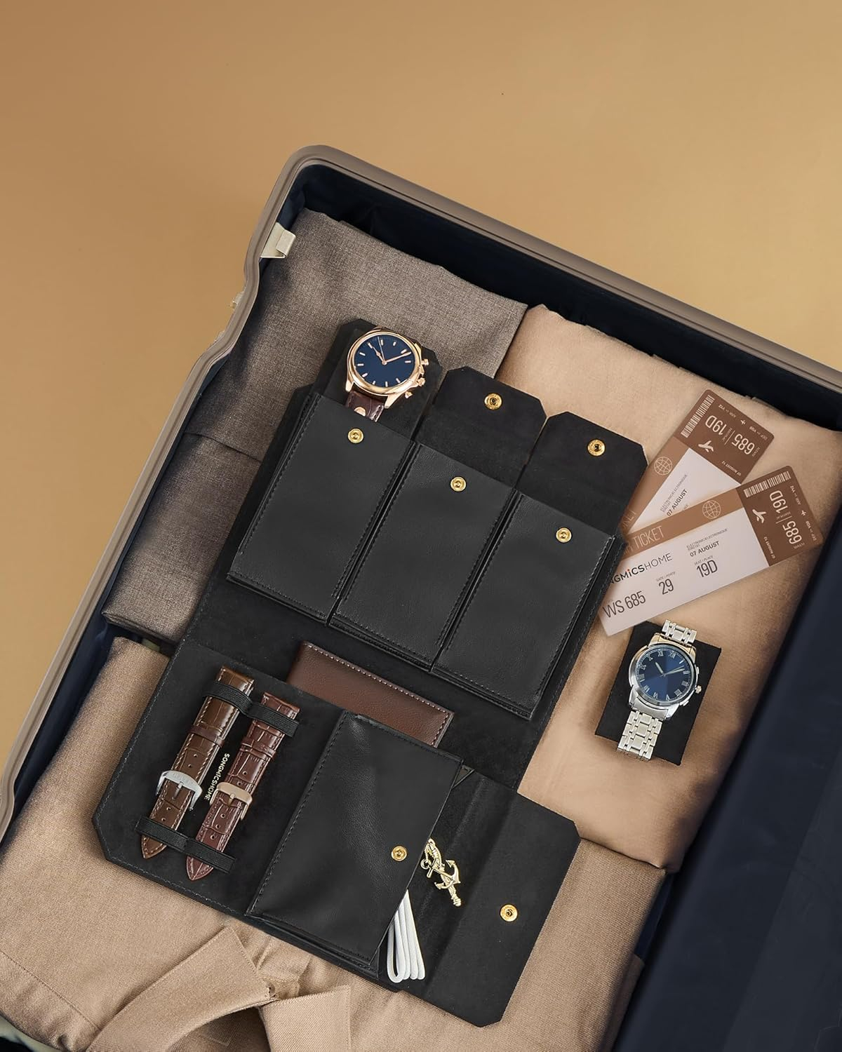 SONGMICS Cutie ceasuri Ronne Collection pentru 3 ceasuri, piele PU, cu compartiment secret, 22x15x5 cm, negru