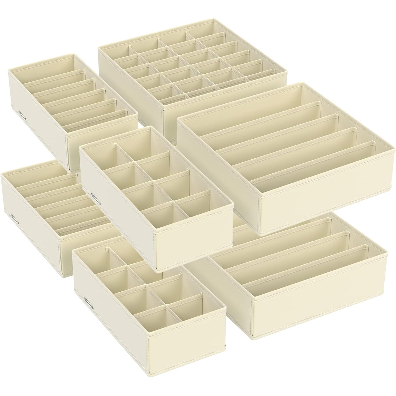 SONGMICS Organizator lenjerie set 8 cutii pliabile din material textil, pentru sertare si dulap, bej