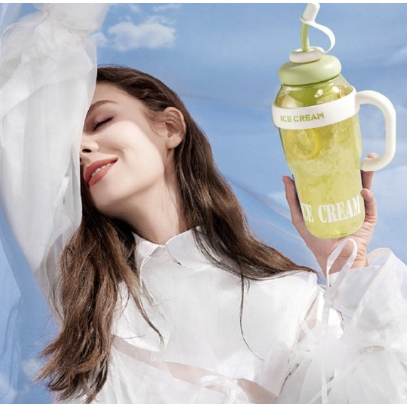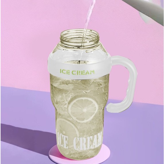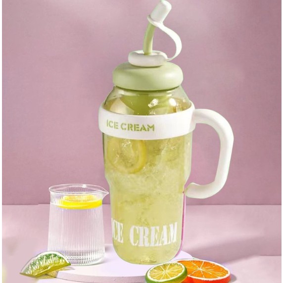 Descriere Produs: Sticlă de Apă Transparentă, 1400 ml, cu Pai și Capac Verde