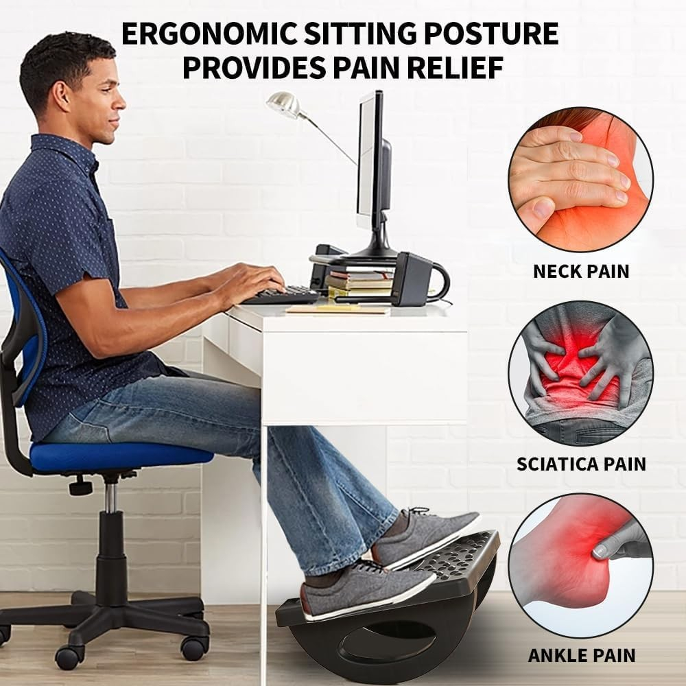 Design Ergonomic: Suportul este proiectat pentru a sprijini picioarele într-o poziție naturală, reducând tensiunea din zona lombară și îmbunătățind circulația sângelui. Vei observa o reducere semnificativă a oboselii și un plus de confort în timpul orelor de muncă.