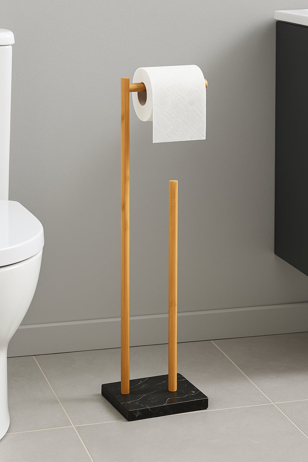 Suport hartie igienica 5Five Lea cu spatiu depozitare, bambus, 22x18x78 cm, negru si maro